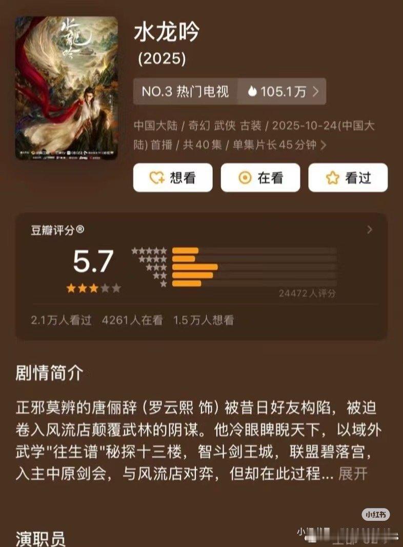 今天三部古装剧开分了,你觉得合理吗?[举手]龚俊暗河传7.1罗云熙水龙吟5.7丁