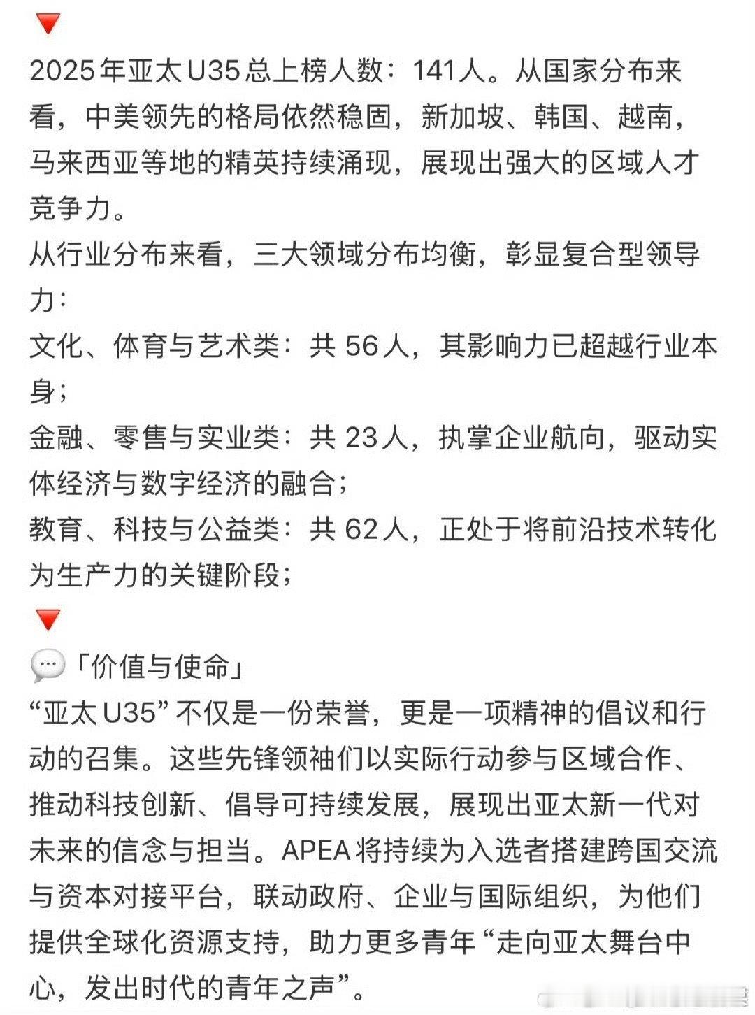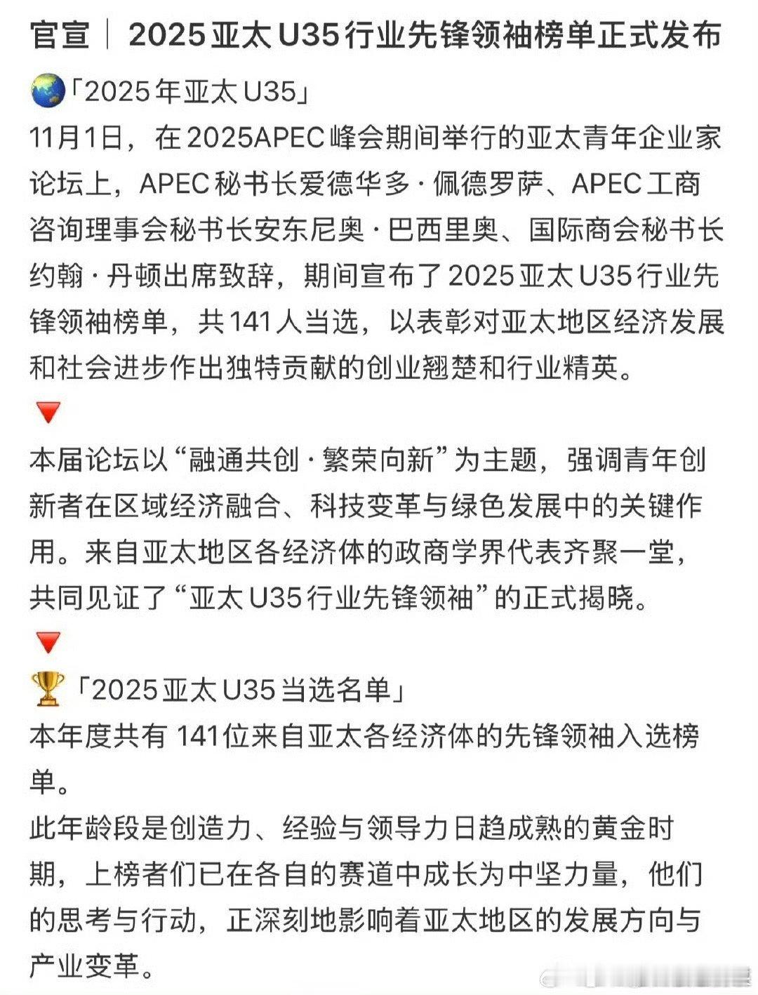 我去 肖战居然入选2025年亚太U35行业先锋领袖榜单 而且他是唯一一位演艺界的