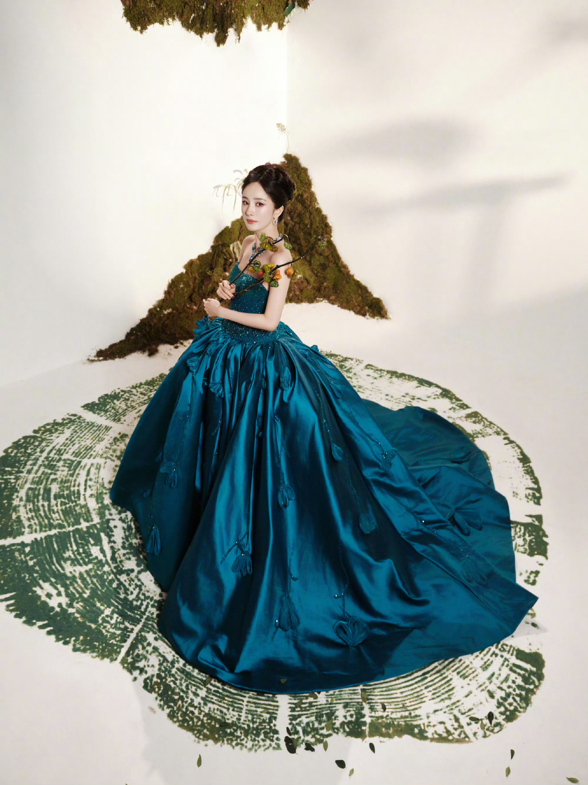 高贵又华丽的孔雀蓝,礼裙和珠宝相得益彰,今晚杨幂出席微博视界大会红毯的造型无懈可