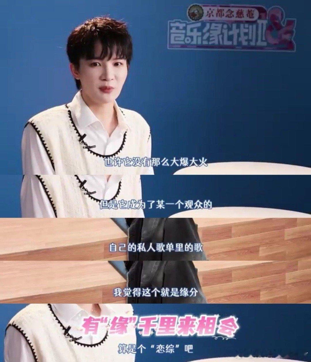 周深在音综说了恋综的词 周深重新定义音综!用恋综视角解读与音乐作品的缘分,"相遇靠缘"、"成为私人歌单"的比喻太戳心。虽然这期未匹配成功,但已期待下一场"约会"!