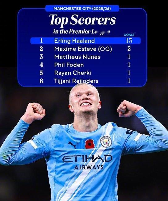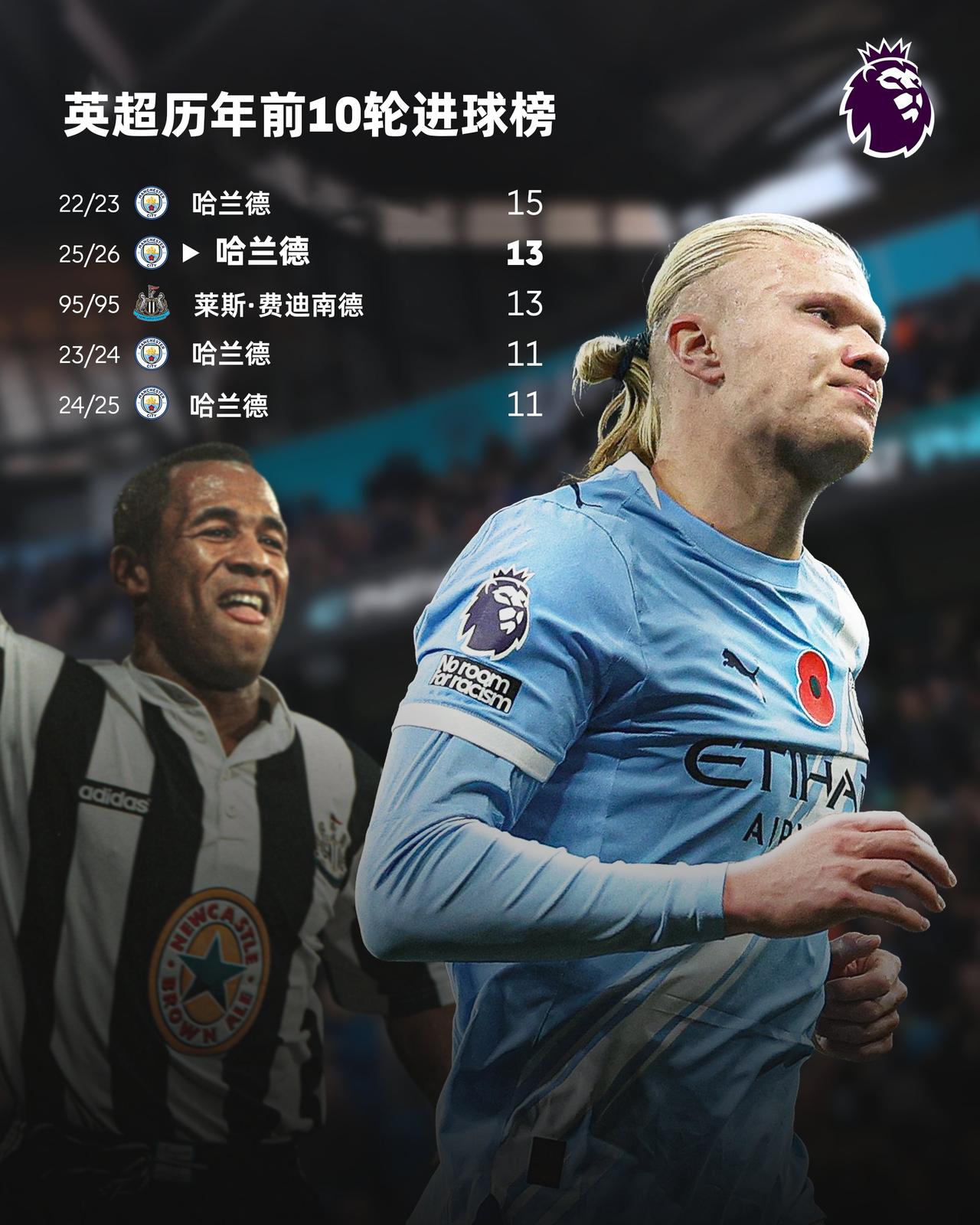 绿茵资讯! ★哈兰德梅开二度,本赛季英超进球数达到13粒,在英超史上前10轮进球榜中,前5名哈兰德一人独占4席。 ★哈兰德成为英超史上第三位连续4场主场比赛中打入至少两球的球员,前两位分别是福勒95/96赛季连续4场和苏亚雷斯2013年连续5场。 ★哈兰德是英超史上主场场均进球最多的球员,高达1.06个,第二多的是亨利的0.88个。 ★拉什福德本赛季为巴萨出场14次,参与11个进球,6球+5助,是巴萨队内进攻贡献最多的球员。 ★安东尼2球1助,近3场西甲斩获4球1助。 ★费兰·托雷斯达成巴萨50球里程碑。 ★276! 萨拉赫追平鲁尼保持的英超单一俱乐部进球参与次数最多纪录,萨拉赫效力利物浦期间打进188球助攻88次。 ★萨拉赫成为继拉什和亨特后,利物浦队史第3位打入250球的球员。