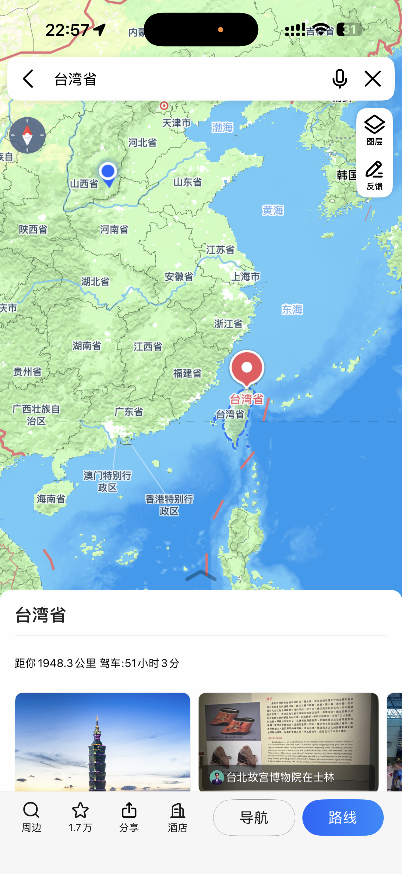 台湾省可以用高德导航了刚拿导航看了一下,真清晰啊,上面直接显示台湾省,中国台湾,