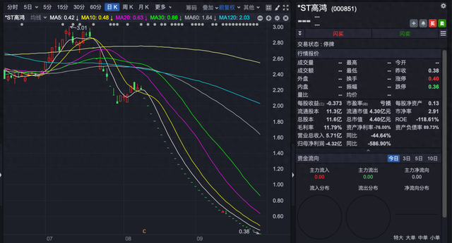 *ST高鸿将不进入退市整理期,而是直接在交易所作出终止上市决定后十五个交易日内摘牌。公司股票终止上市后,将转入全国中小企业股份转让系统有限责任公司依托原证券公司代办股份转让系统设立并代为管理的两网公司及退市公司板块挂牌转让。