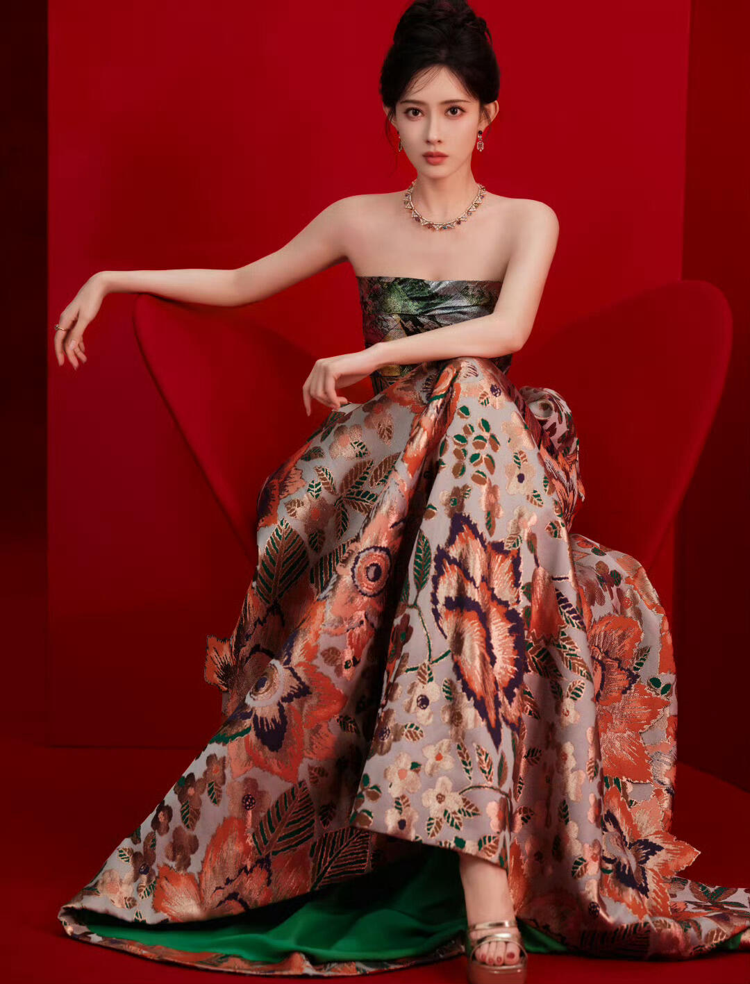 孟子义 繁复印花礼裙展现独特魅力