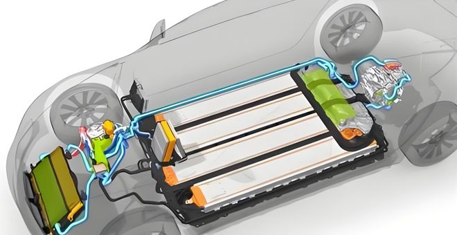 但在电车上,电池、电机、电控包括智驾域控制器等等都是热源,这些全都是高压电气部件。不同零件工作温度也有不同,车企会把这些需要散热的部件用冷却水路都连起来,组成一个循环系统。