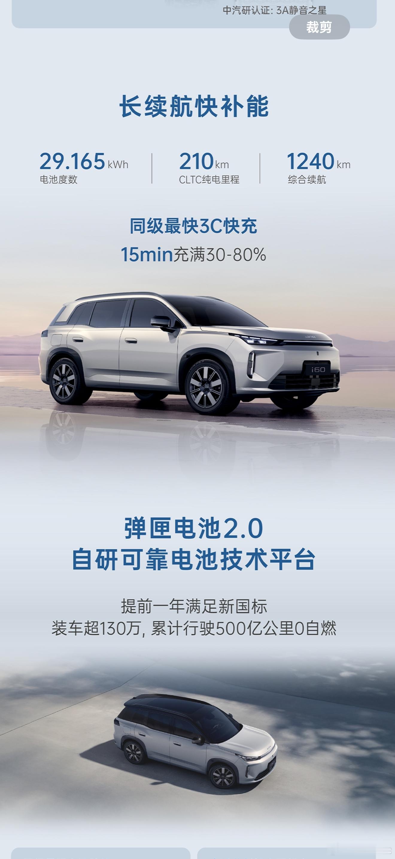 又来新车了,埃安增程AION i60,预售价增程版12.68万,纯电11.98万,增程版发电功率85kw(不是发动机功率),极限馈电状态下可以保持150kph持续行驶,电机峰值功率180kw,油电转换效率,一升油3.73电,说人话就是,比较省油,超车动力也够,亏电也不会龟速…