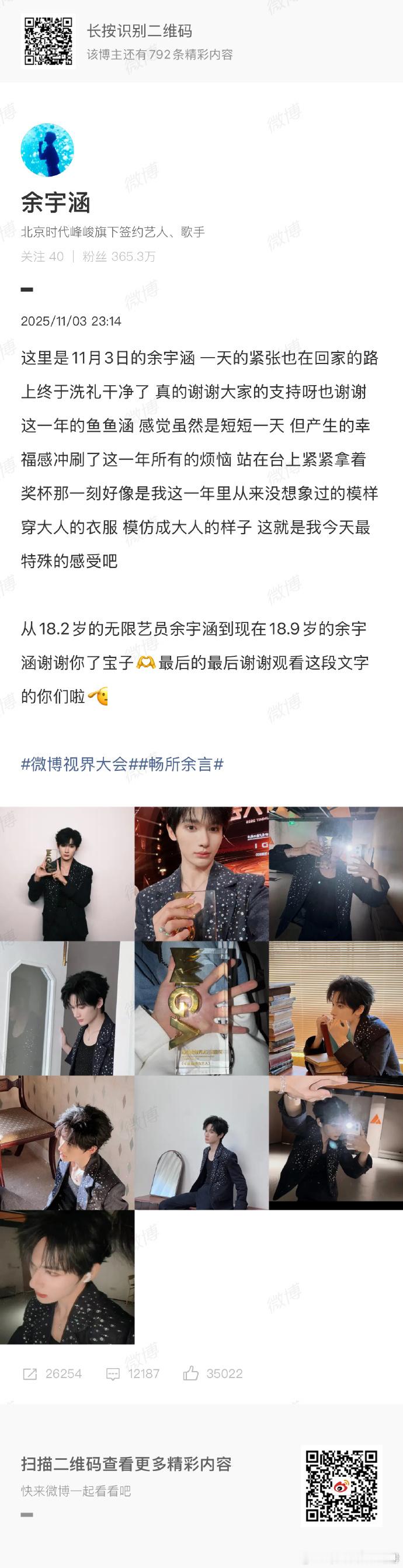 跟同担唠起余宇涵的感慨,越说越心疼,余宇涵穿大人衣服模仿大人样子 他在慢慢长大,从青涩到逐渐成熟,每一步都看得人感动,未来肯定会更棒!