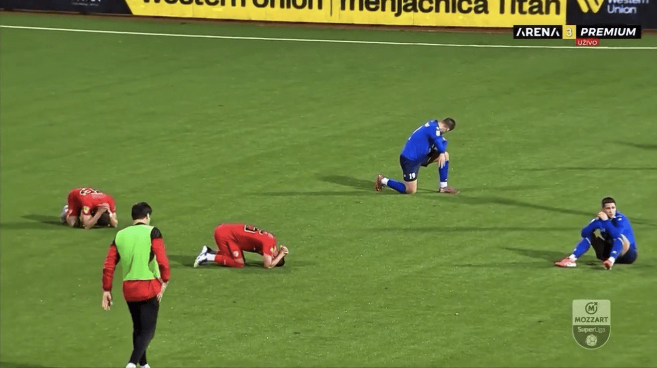 主裁判在比赛第41分钟得知这一消息,并随即吹停比赛。听到噩耗的双方球员纷纷跪地落泪,本场比赛宣布取消。