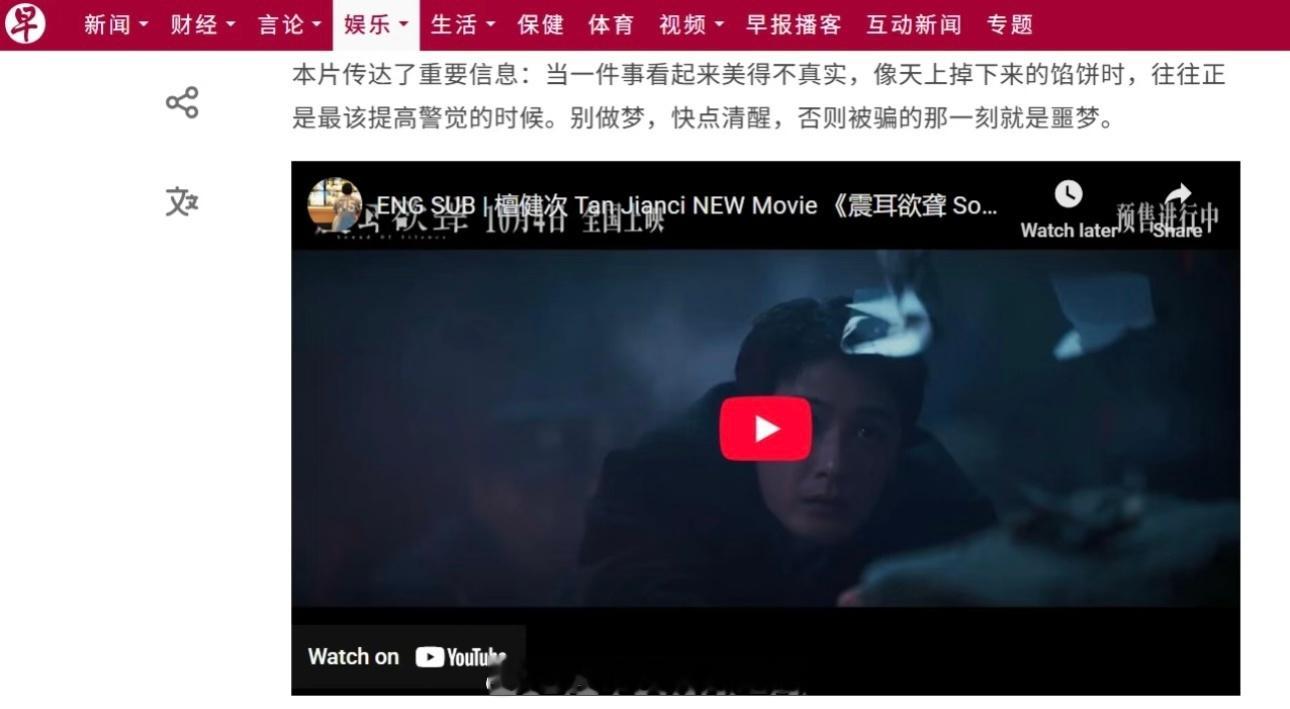 檀健次《震耳欲聋》又上新加坡早报啦!
