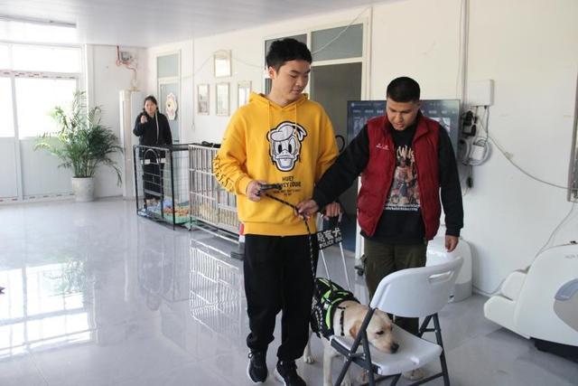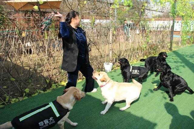 郑州市爱心导盲犬服务中心主任关骊与导盲犬互动