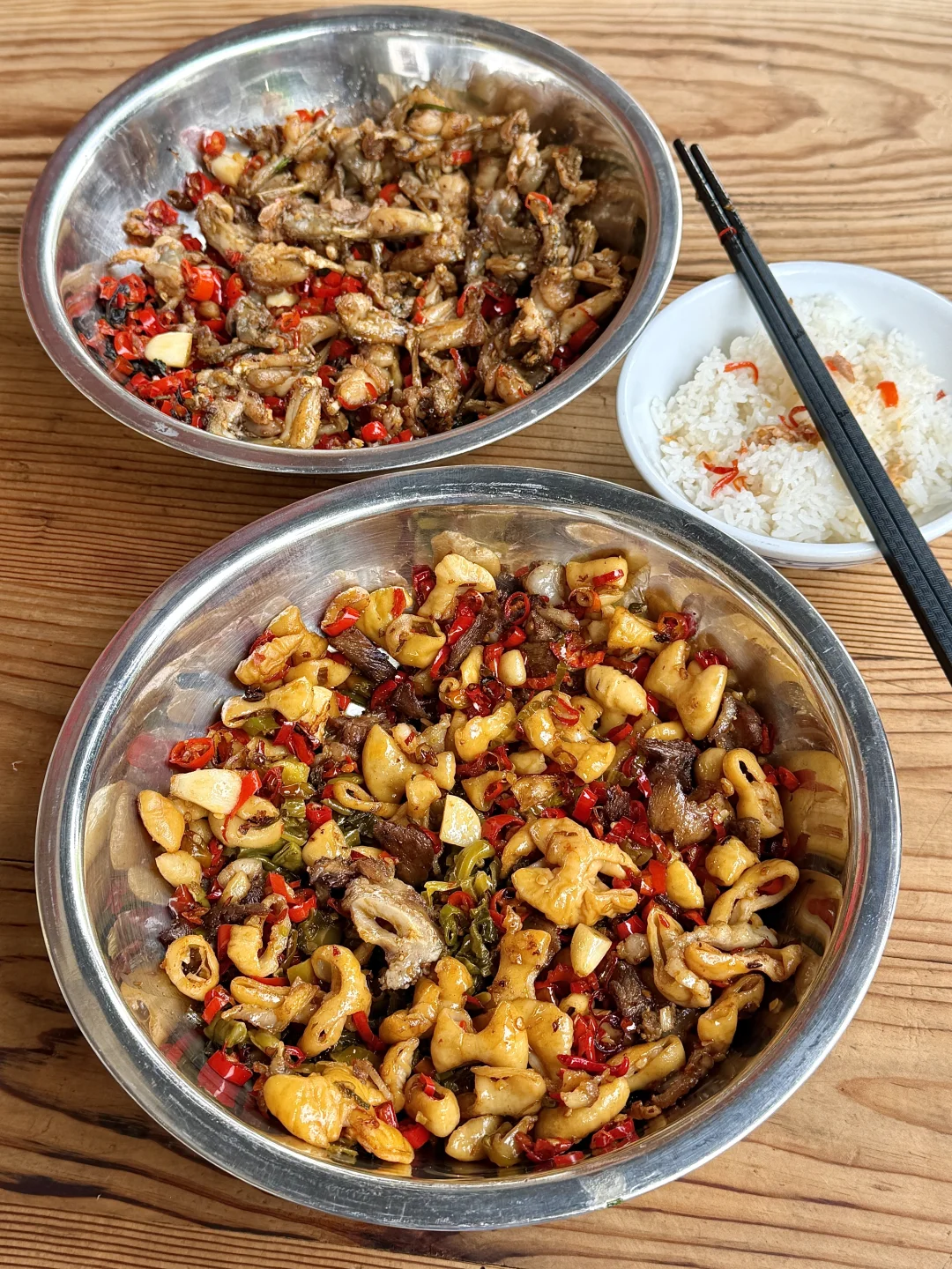 真的名不虚传好吃👍🏻!! 服了我自己为什么在长沙生活了二十多年才去吃!茶油田鸡朋友吃完又拿汤汁拌饭吃🥹🥹 酸菜肥肠一定要点!一定要好吗!再来扎玉米汁真的美滋滋了😭他家还有好多老长沙特色土菜,下次一定要带朋友来n刷(定位到:湘超肉联厂