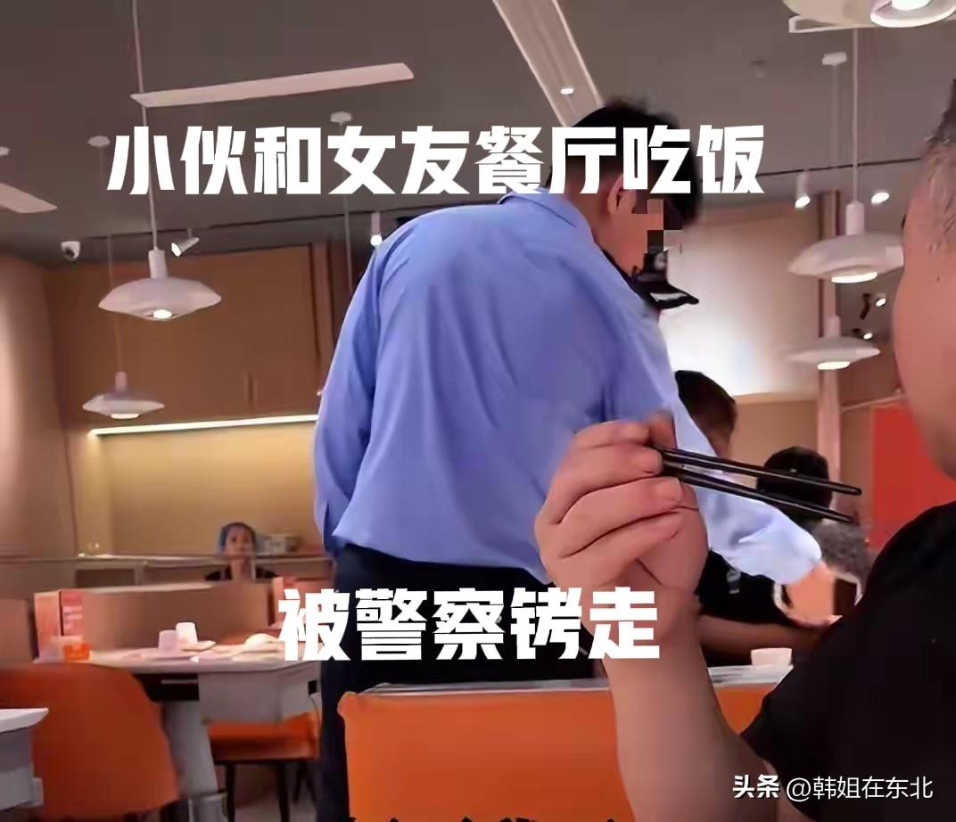 小伙和女友餐厅吃饭,被警察戴上手铐!10月6日下午,在山东青岛市黄岛区万达广场,