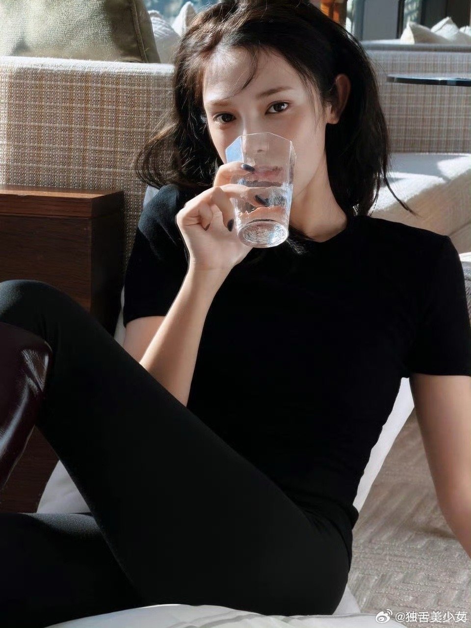 彭小苒白开水妆 彭小苒这波化的白开水妆清透高级,把彭小苒立体五官完美呈现出出来了,搭配简约的all black不简单