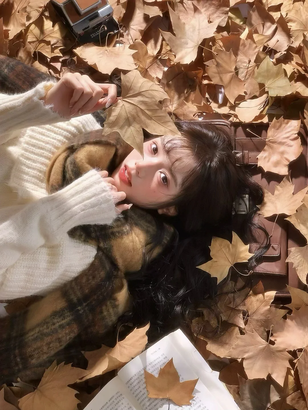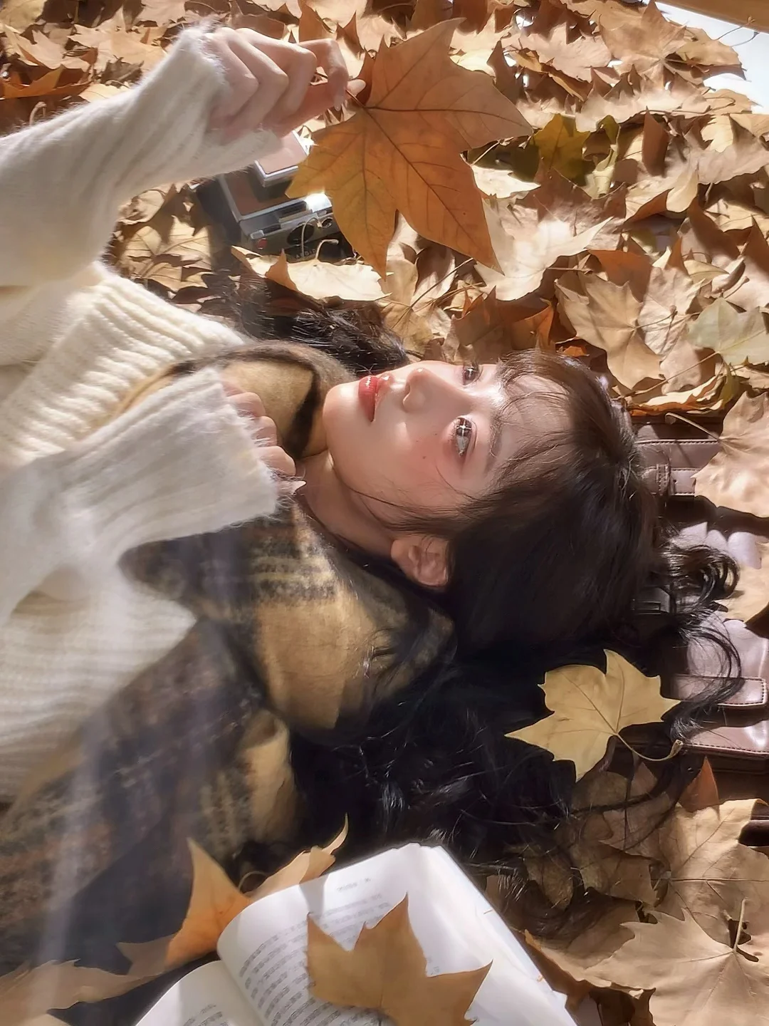 好喜欢秋天呀🍂 谁能想到这是在室内打光拍的! 躺在落叶堆里真的超出片✨ 秋日氛围感拉满了 live图都这么好看呀~