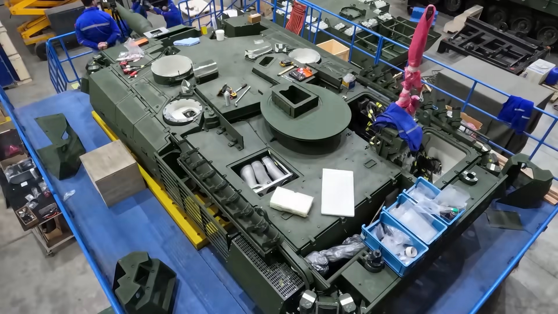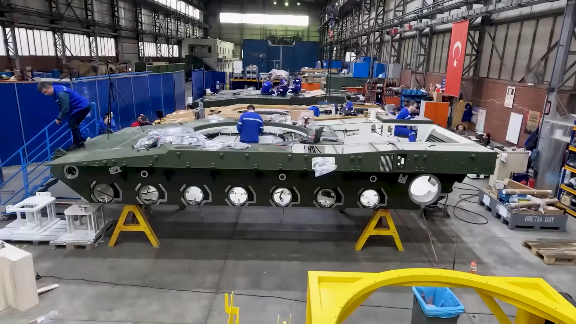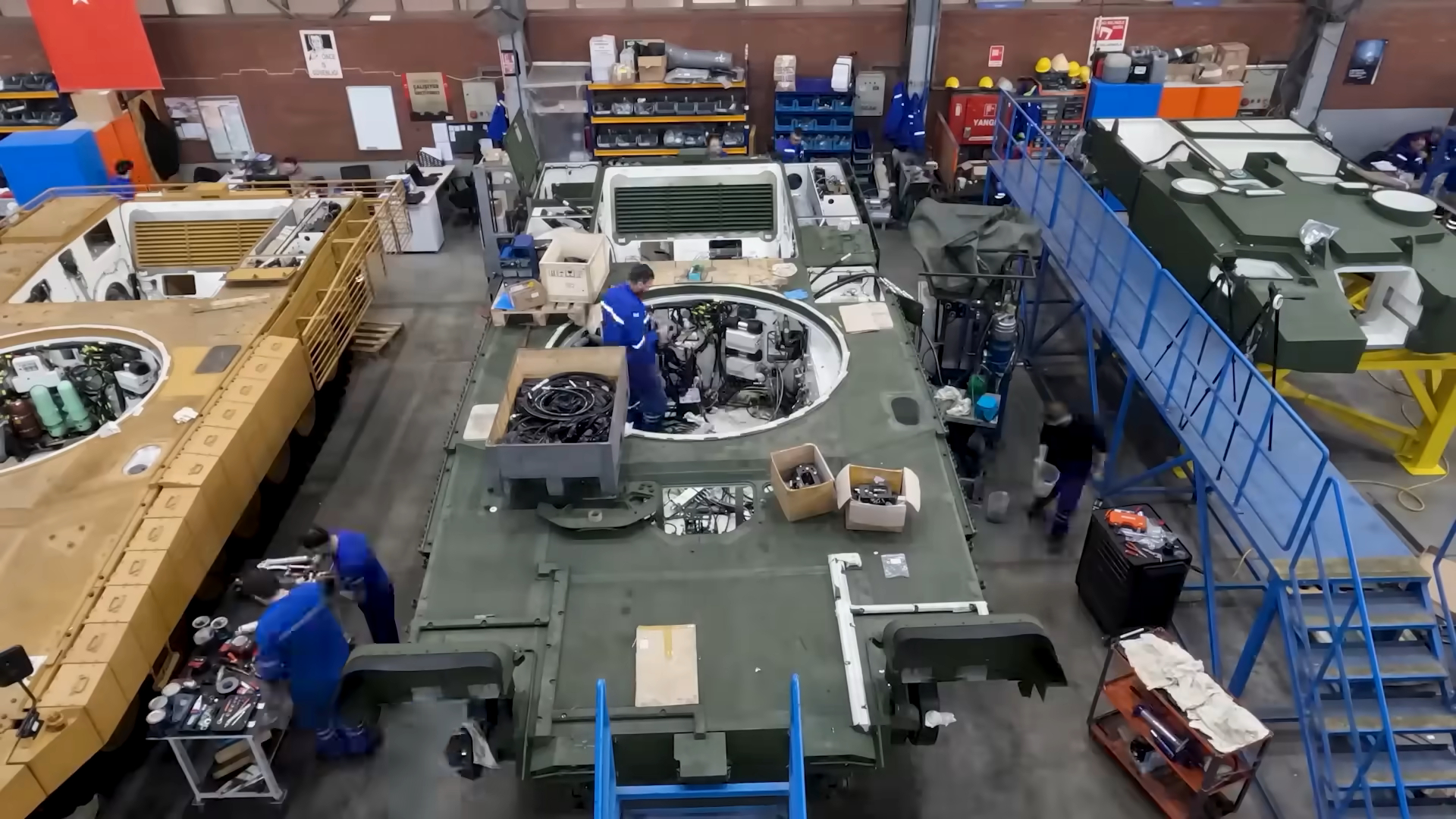 图13至图17为正在焊接与组装的车体。除了基础装甲和正面主装甲包,据称罗克桑公司已经为车体和炮塔侧面提供了新的混合式附加装甲包(图18),这包括了新的爆炸式反应装甲和被动装甲。