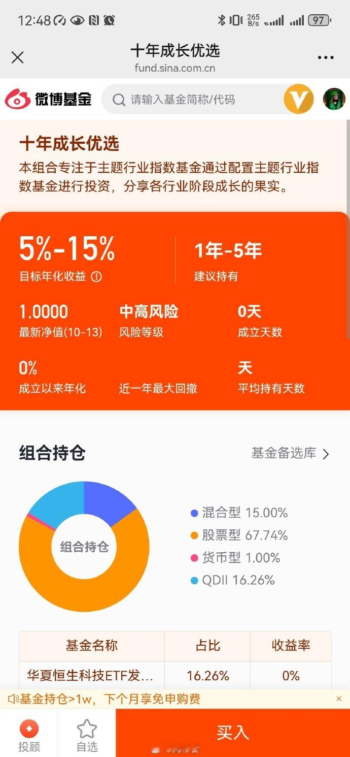 好消息!十年成长优选正式上线微博基金!买基金上微博十年成长优选基金投顾
