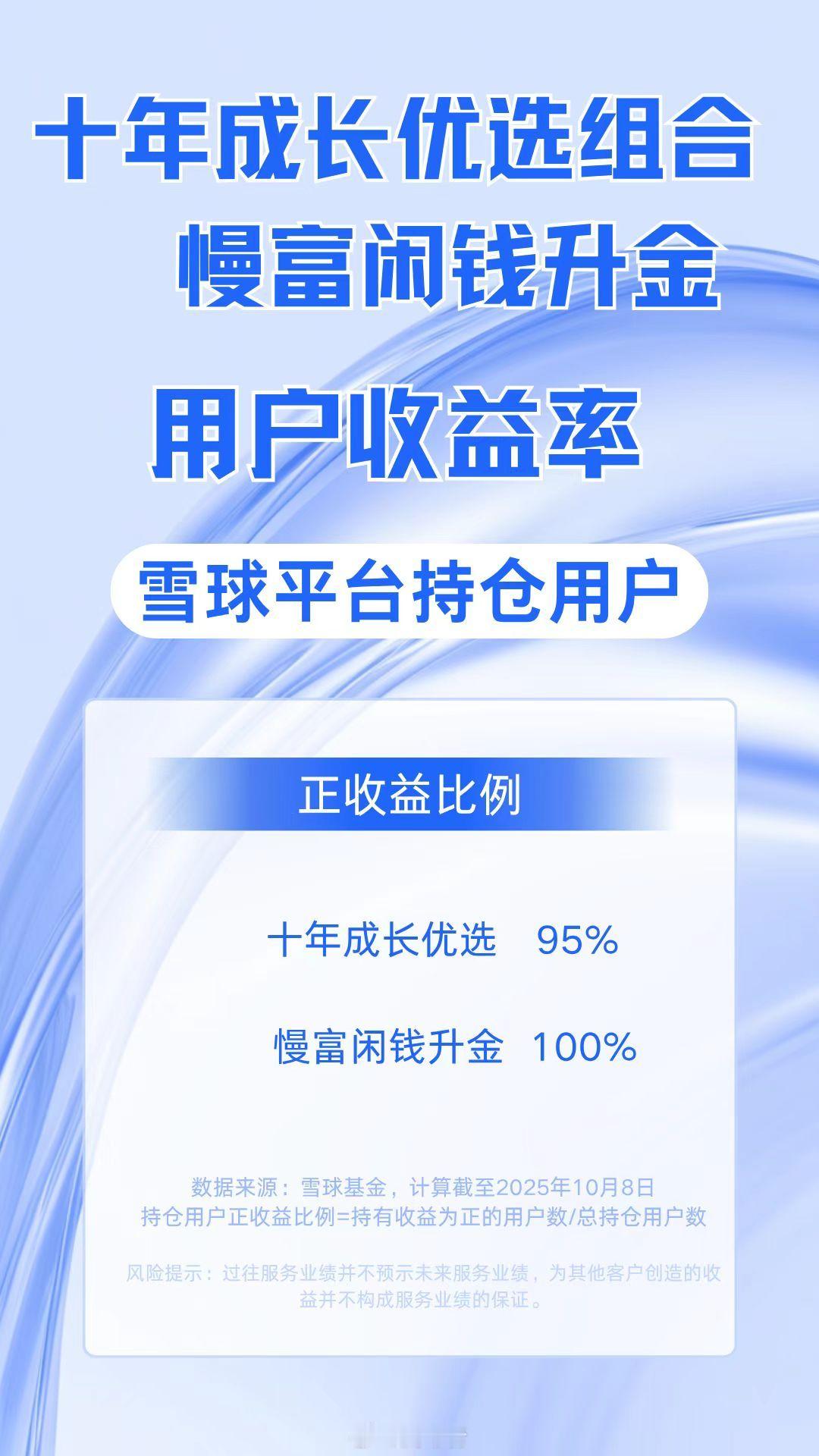 截至2025年10月8日,十年成长优选持有人正收益比例在95%!