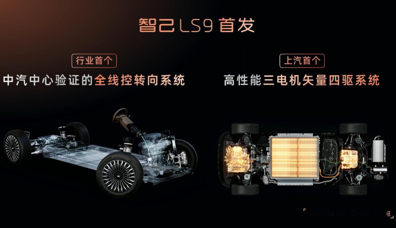 上汽旗舰智己LS9还全系标配上了灵蜥矢量四驱系统,简单来说,就是对每一个轮子,每一个方向上动力精准控制。