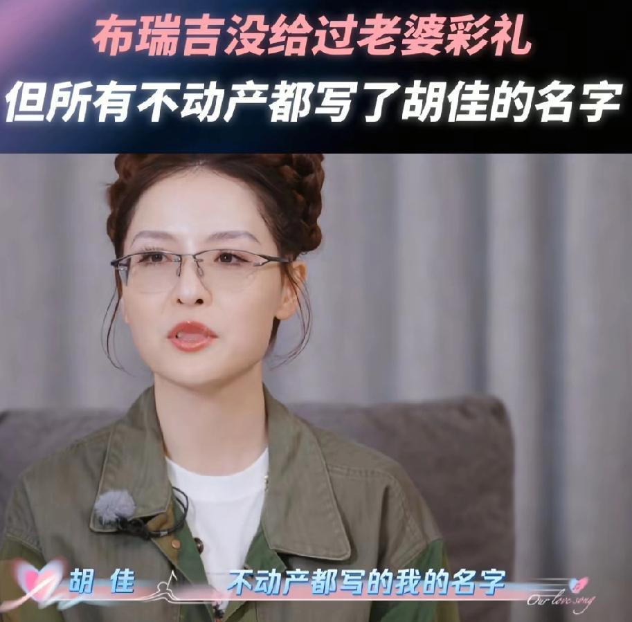 这样也挺好的 结婚时老婆没有向布瑞吉要过彩礼,胡佳解释:“他所有的不动产都是写我