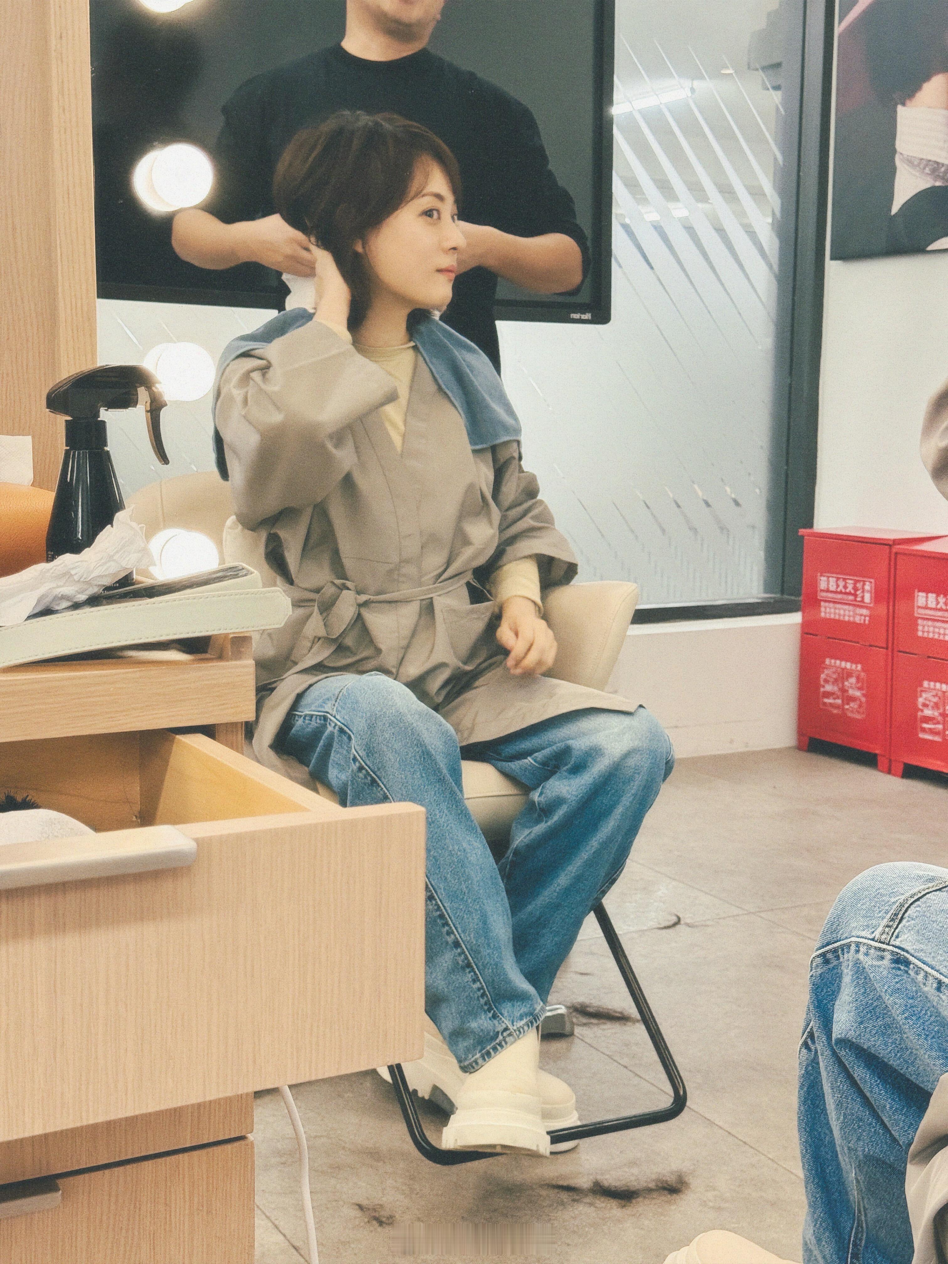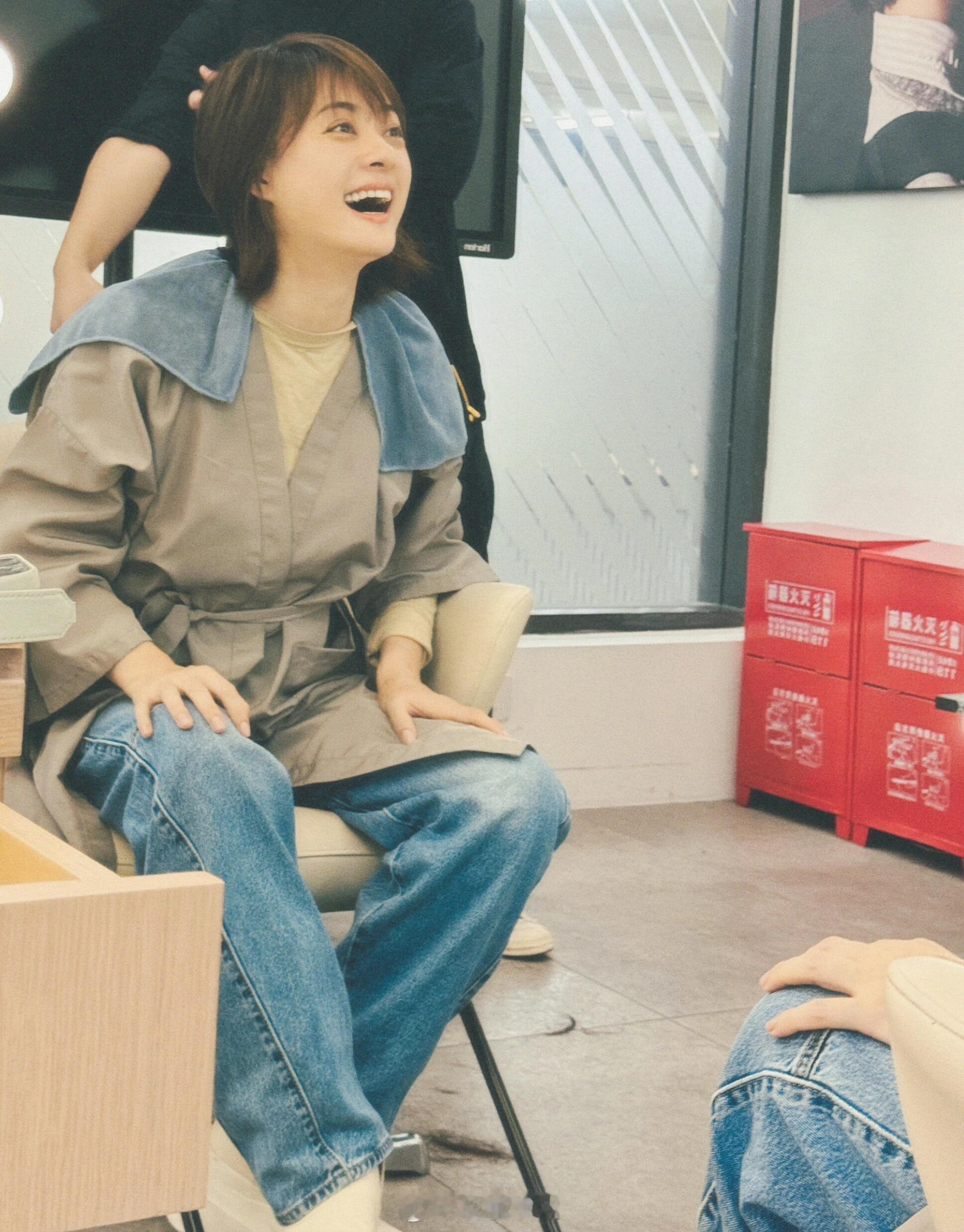 孙俪剪个头发笑的这么开心