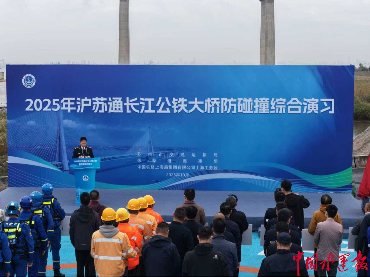 近日,2025年沪苏通长江公铁大桥防碰撞应急演习在沪苏通大桥水域成功举办。此次演习由张家港海事局、苏州市交通运输局、中国铁路上海局集团有限公司上海工务段共同主办,张家港市交通运输局、张家港市应急管理局、张家港市气象局、长江上海航道处等12家单位协办。