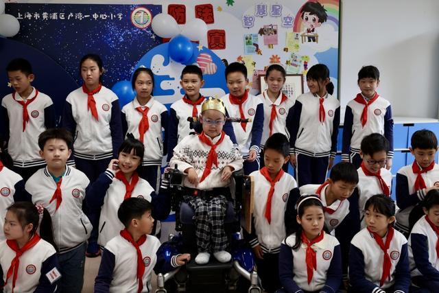 今天(4日),黄浦区卢湾一中心小学的校园变身生日会现场,全校43个班级为五年级的一名学生12周岁生日分别录制了生日祝福,并准备了意义感十足的生日礼物。这名学生就是“钢铁侠”邹维洛。昨天也是他在小学阶段的最后一个生日。