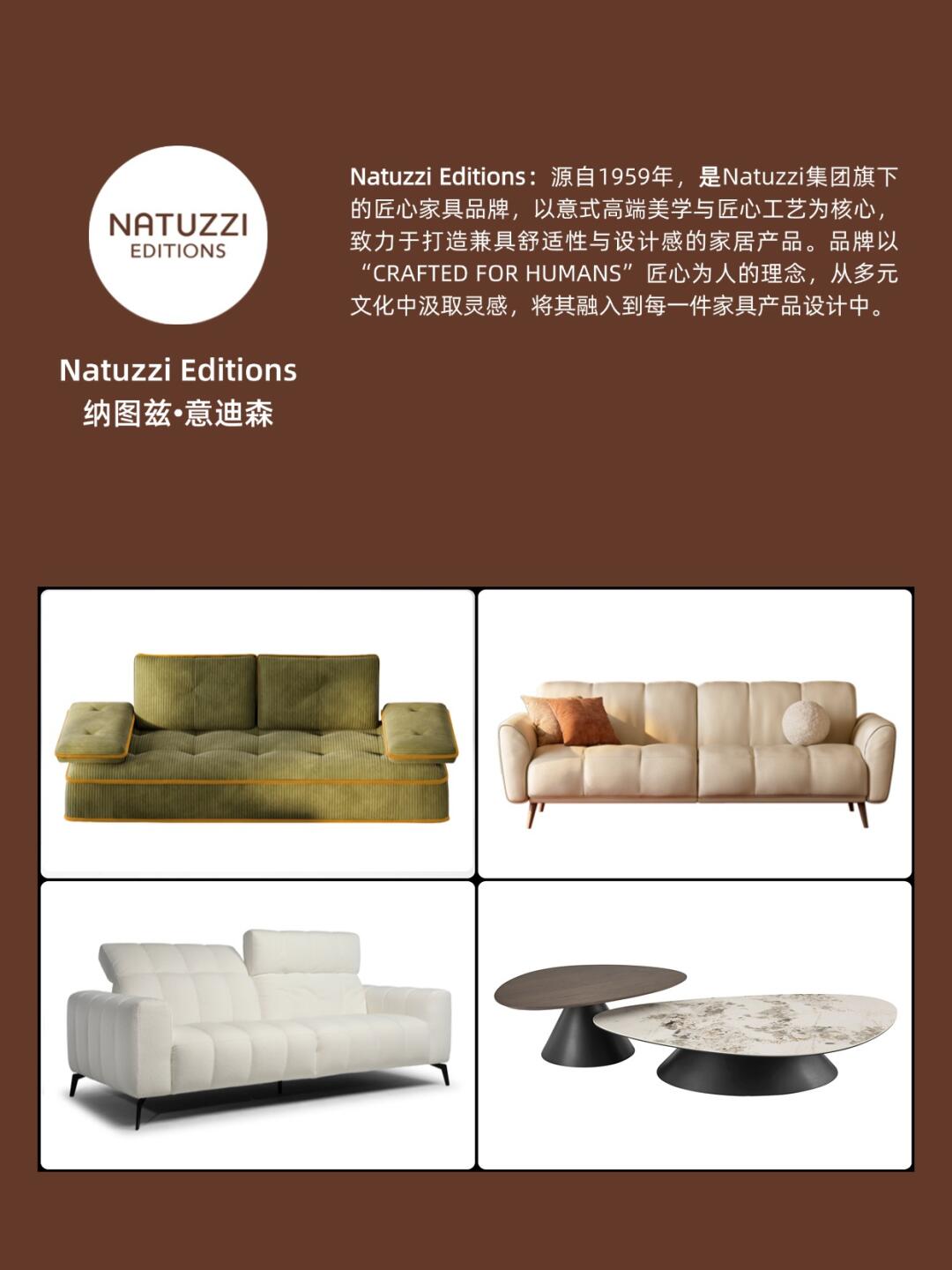 - Natuzzi Editions:NATUZZI集团旗下的匠心家具品牌,兼具美学与舒适,为中高端消费者提供生活方式解决方案