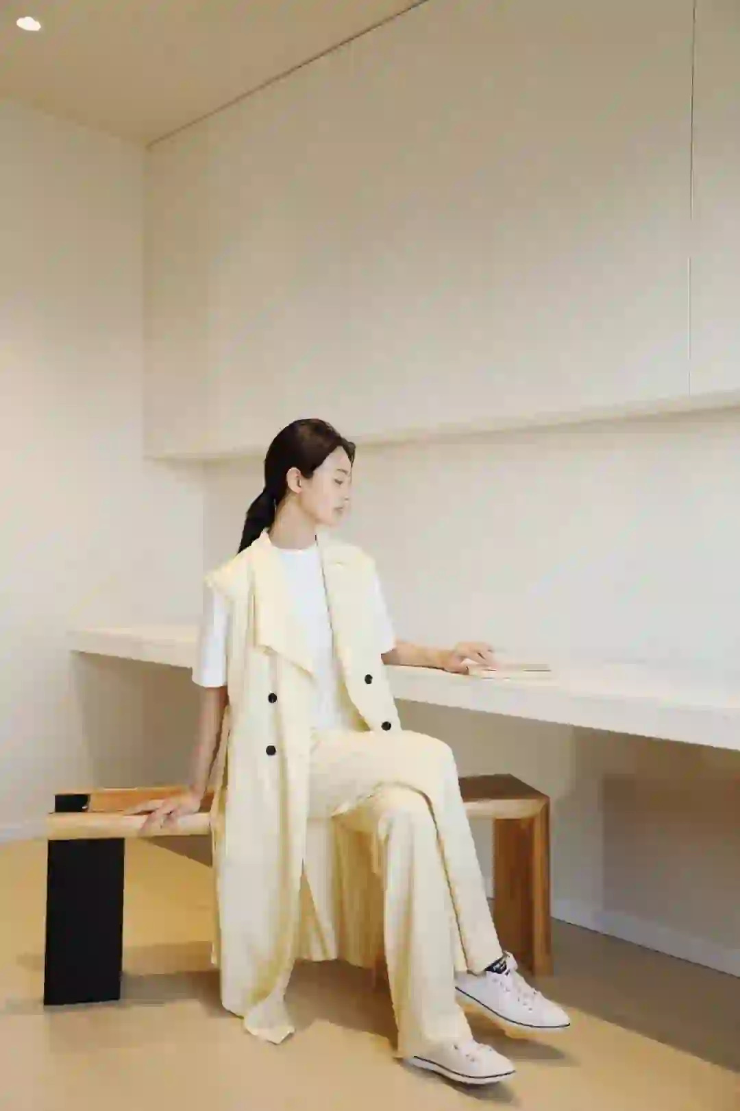 饱和度低的妆容搭配纯色ootd 简单又美丽