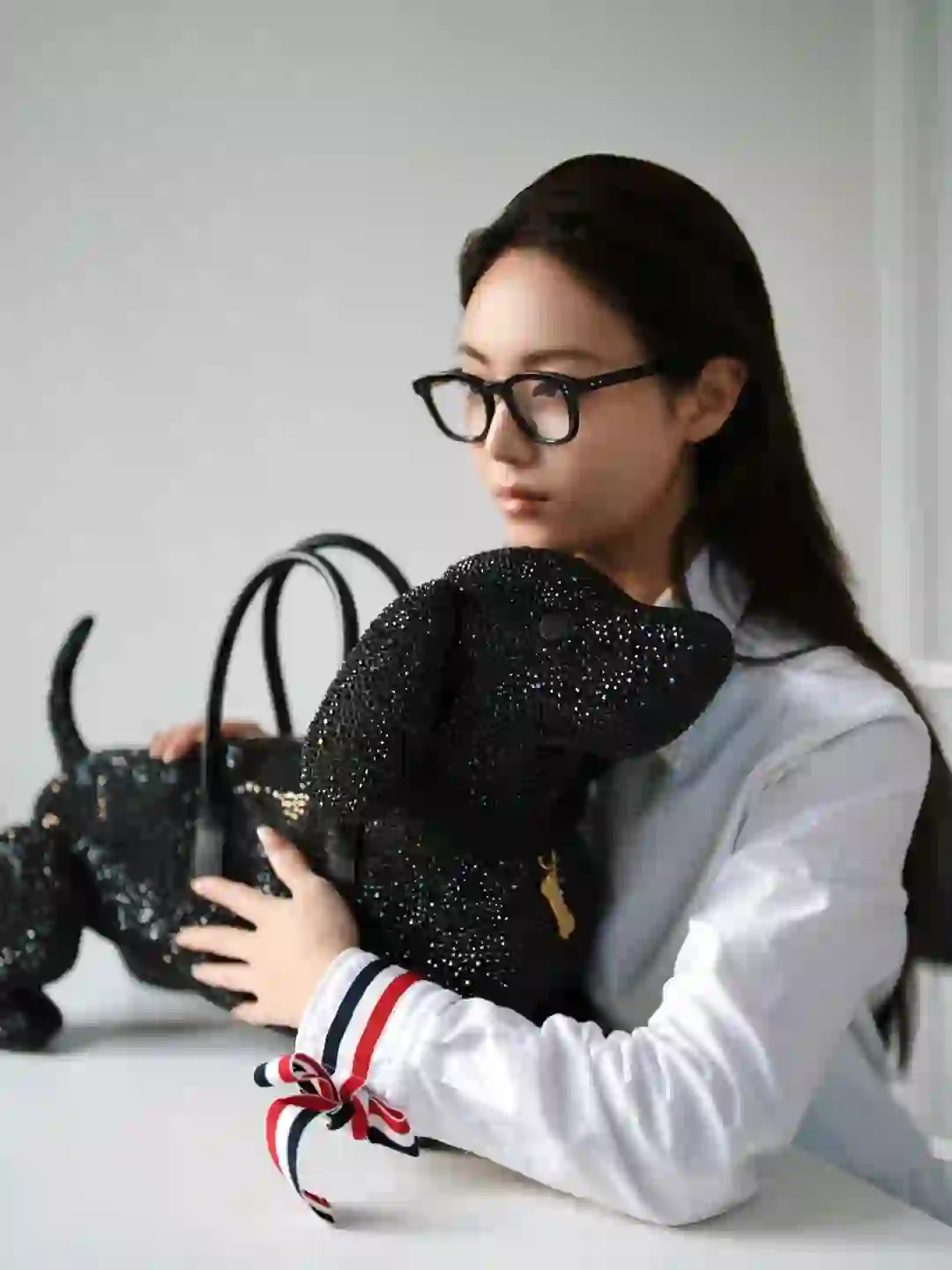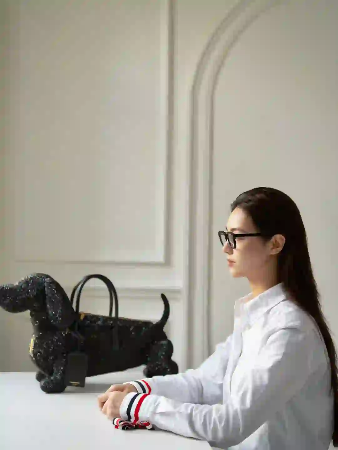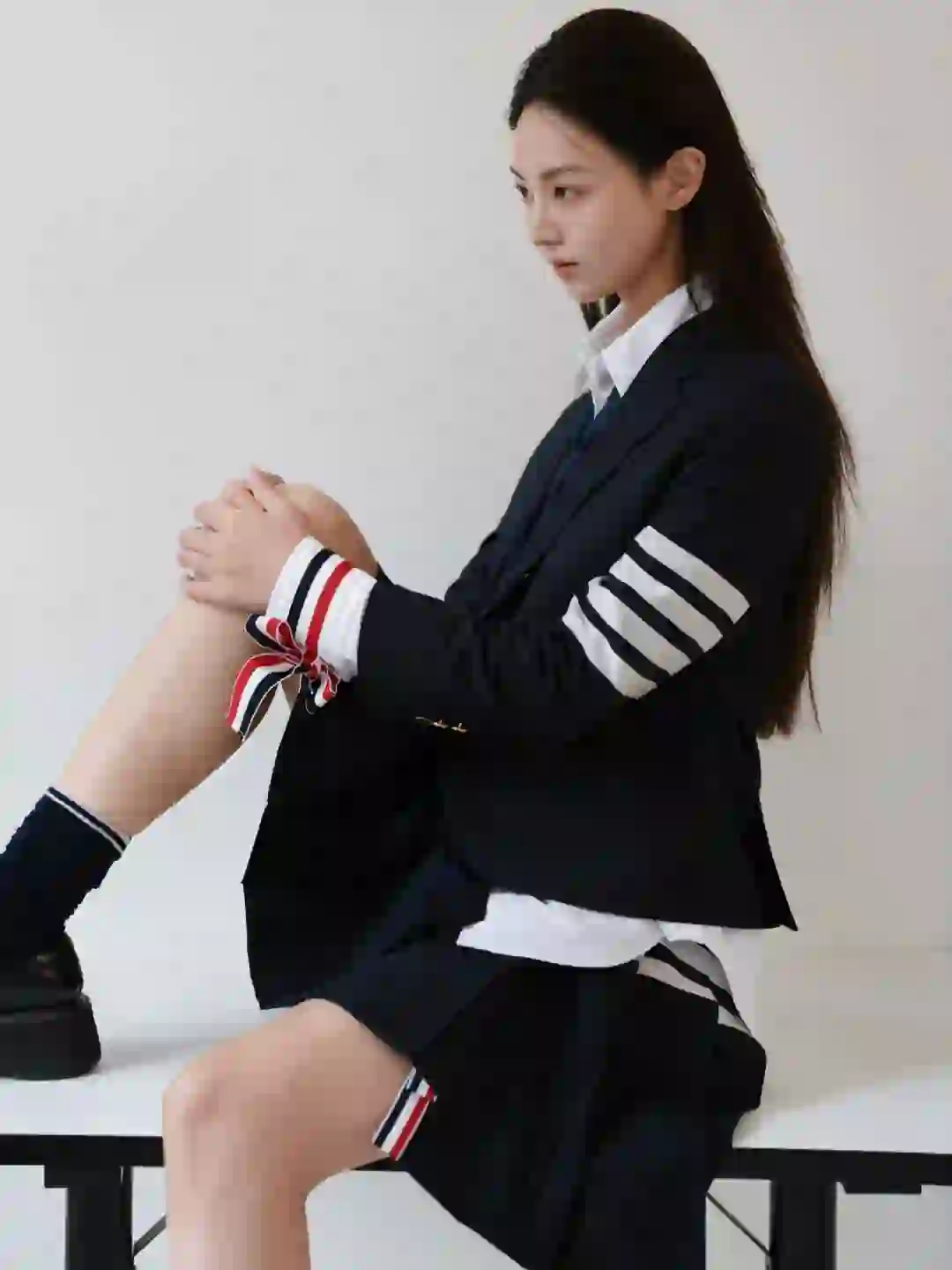 谁能拒绝一只特别的黑色小狗? 喜欢非「统一性」标准的任何 白色衬衫袖口蝴蝶结搭配同色系领带 剪裁精良的短制服 制服特征在于模糊人的个性和抹去区别性,将不同的个体以同一种范式着装形成紧密联系的「统一性」群体 Browne 通过对「制服」这一载体的重新剪裁,将矛盾性生动地体现。 冷静又浪漫的载体