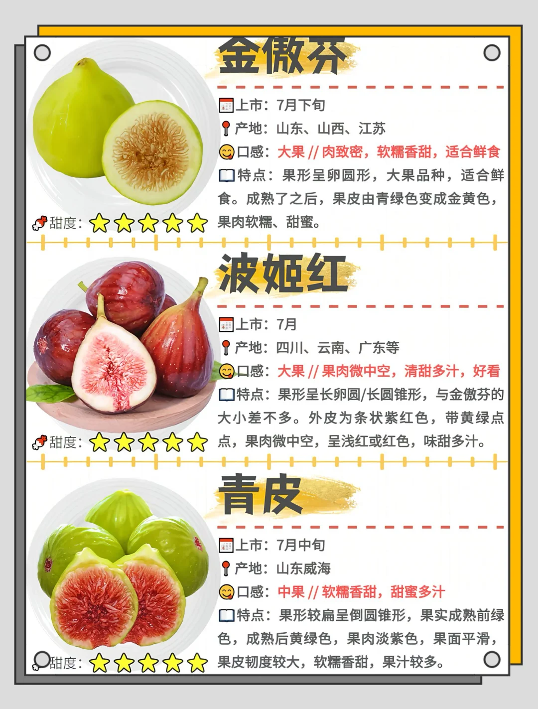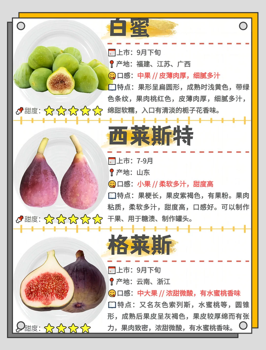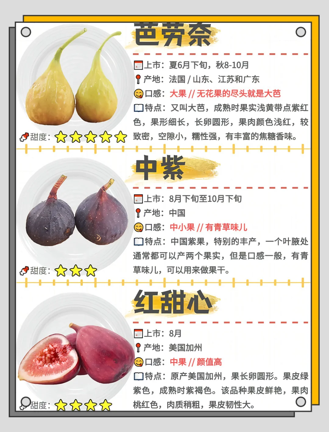 🌱这次给大家整理了超全的无花果品种图鉴,每一个名字都充满了诗意~金傲芬、波姬红、青皮...光是听名字就让人心动不已呢!💖
