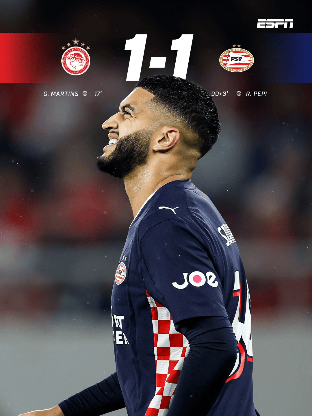 奥林匹亚科斯在比赛中占据优势且率先由热尔松-马丁斯取得进球,但埃因霍温最终在客场全身而退。