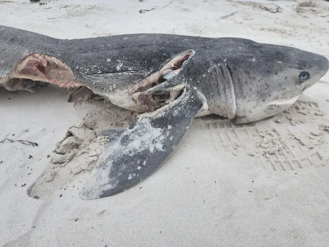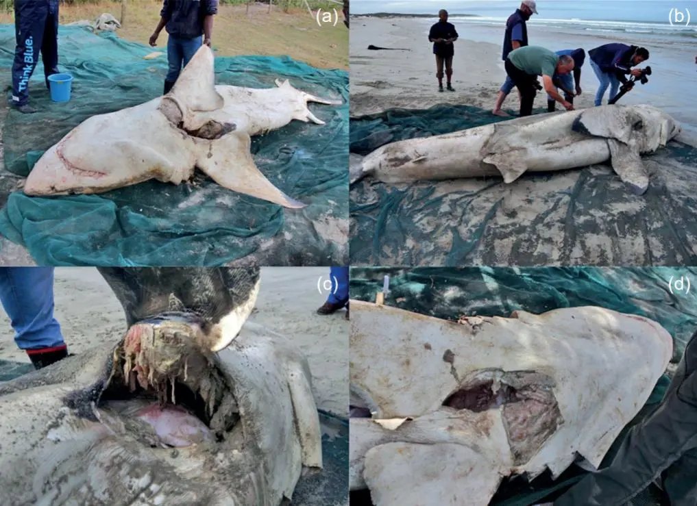 ² 图2、图3是过去拍摄的。人类已经在沙滩上捡到很多个几米长的大白鲨尸体。翻过来看肚皮,肝被掏空。图4是人类跟踪研究的一头雌大白鲨,有名字有编号,没想到也遭到虎鲸毒手。科学人医疗社会史