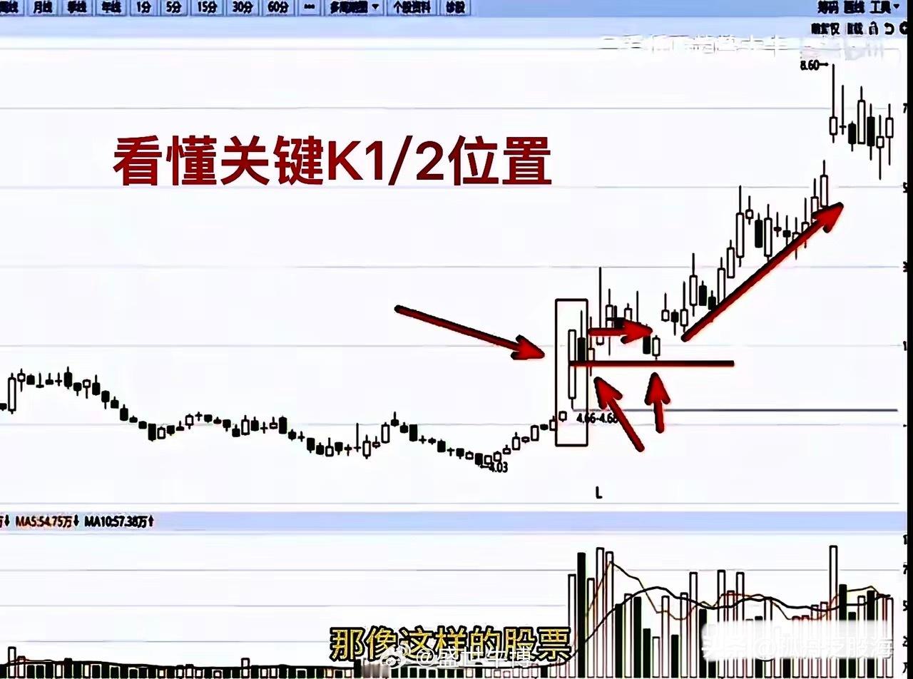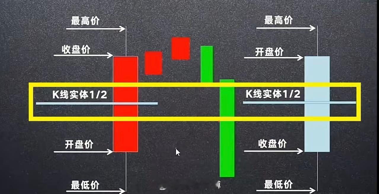 ​而现在正好有一种方法能找到主力的成本线。答案就是:关键K线的1/2位置。暂时不去解释逻辑,可以先验证成功率。