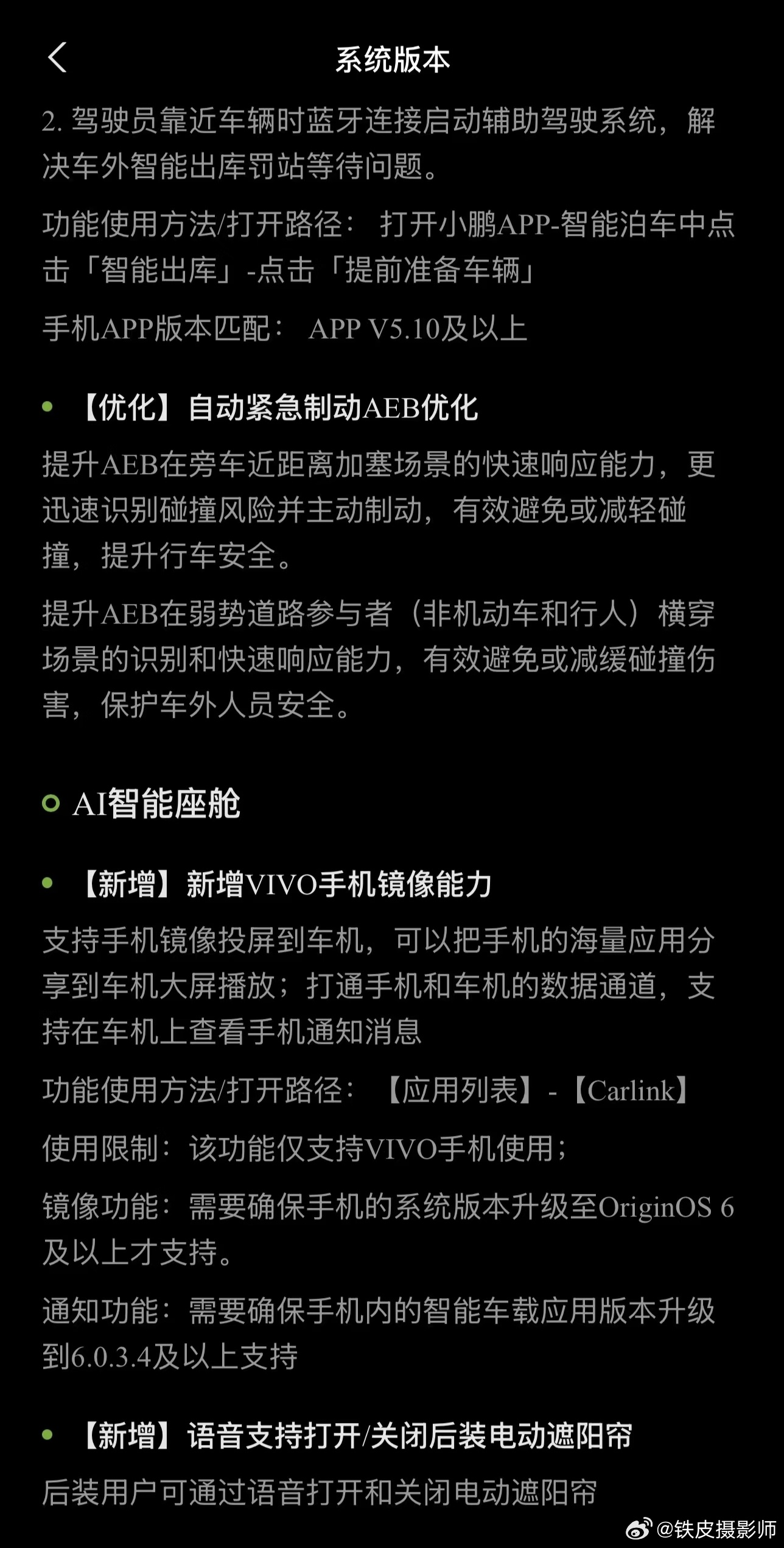 XOS 5.9.0,除了车位到车位之外,自动降地锁的时候可以随即启用自动泊车,更人性化,另外支持 VIVO 手机的功能也都上了。后续蓝厂手机可成为鹏厂深度融合的移动终端了。小鹏科技日何小鹏谈物理ai领域的研发变革 ​​​