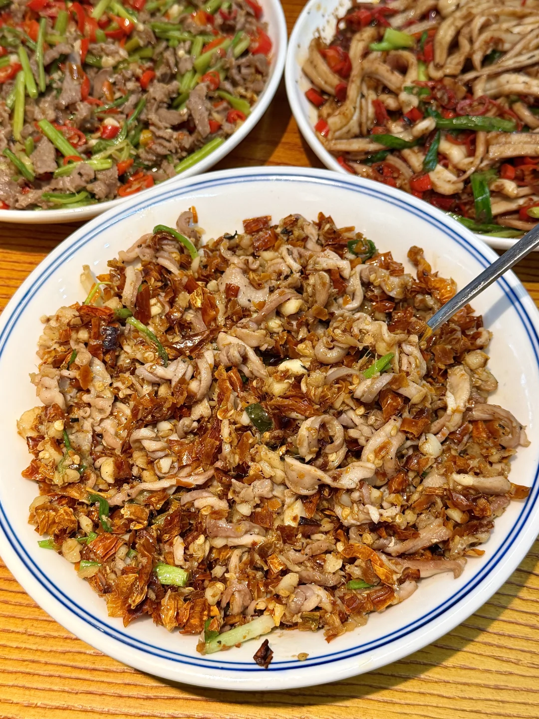 衡阳吃了20次以上……才舍得分享的店! 好吃但有点难找🥹就在南岳大庙附近!叫📍农家小院,开了好多年!非饭点来都座无虚席……小炒黄牛肉、衡东脆肚、红烧肉巨下饭!属于正宗衡阳老口味~ 豆花和红薯片都是免费自助的!这性价比还要啥自行车啊啊😭😭记得再来份现做的纸皮烧麦,吃一次我可以怀念一辈子。。。。定位到📍农家小院