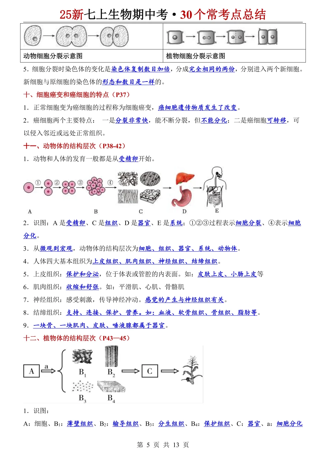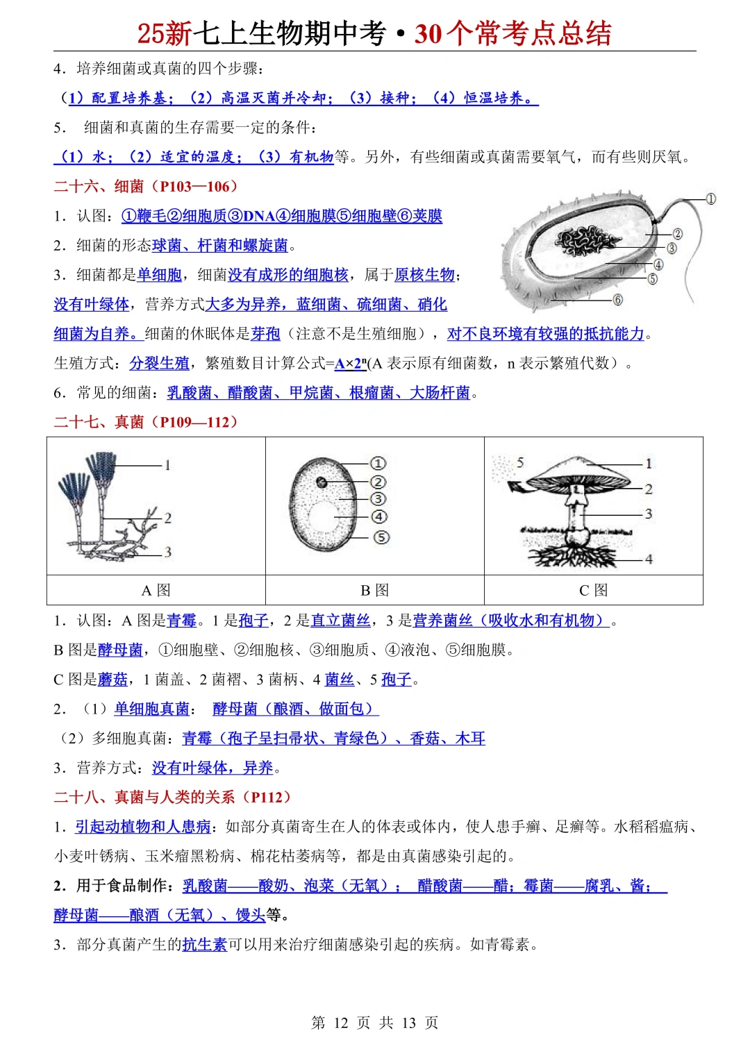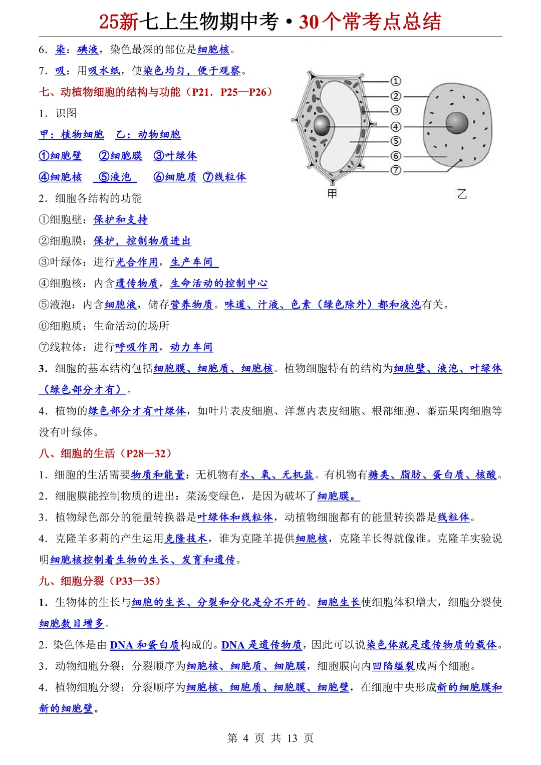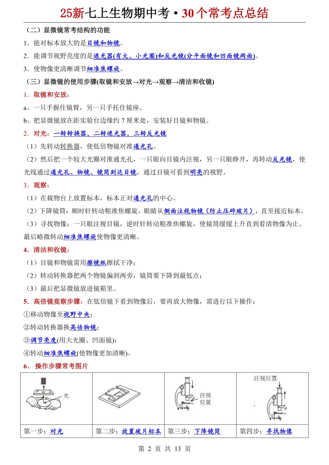 初中生物 知识点总结 初中生物会考复习资料 必背知识点 生物笔记 生物 核心考点七上生物必考考点 期中考试