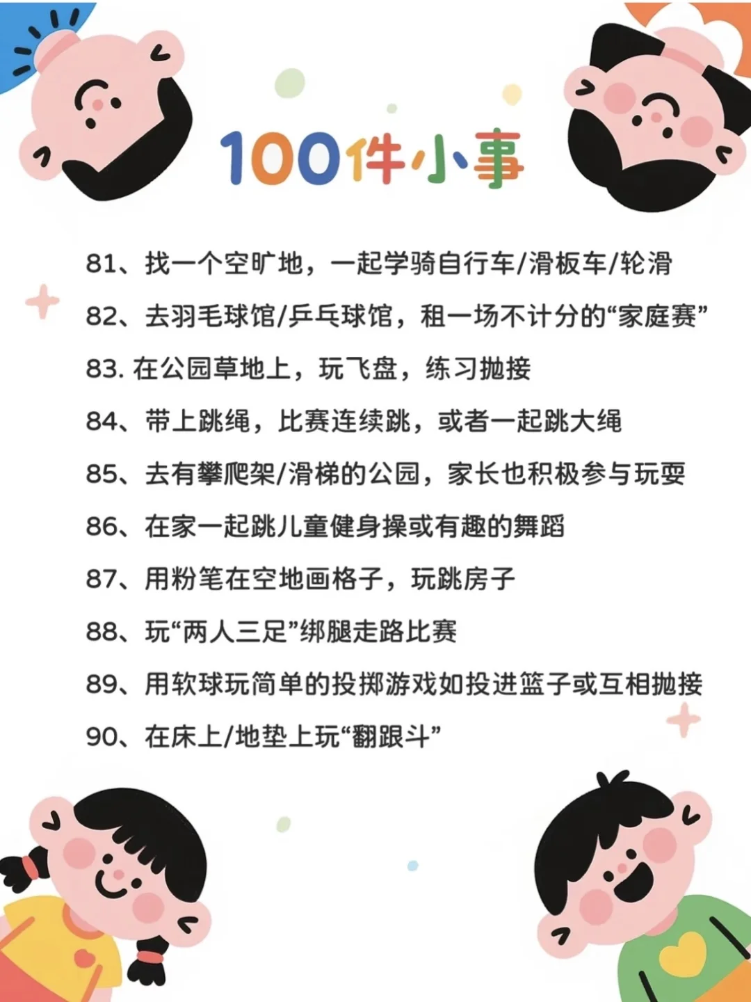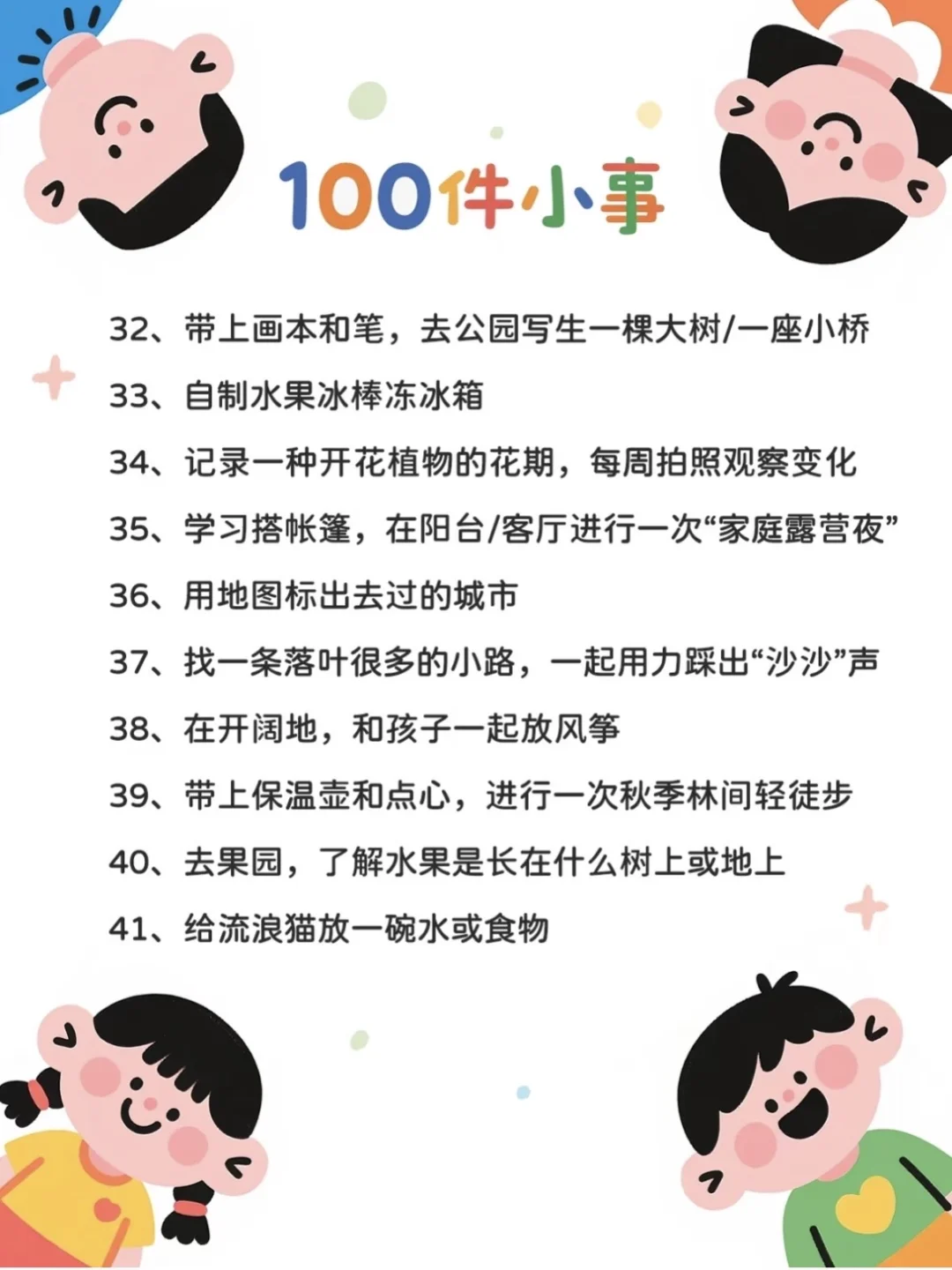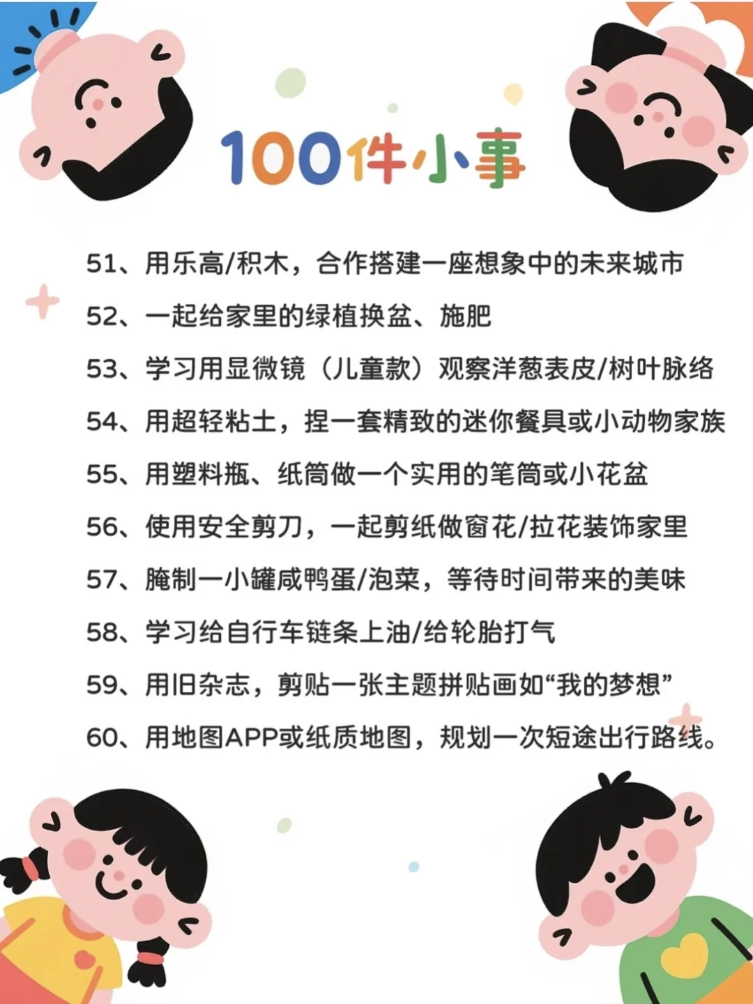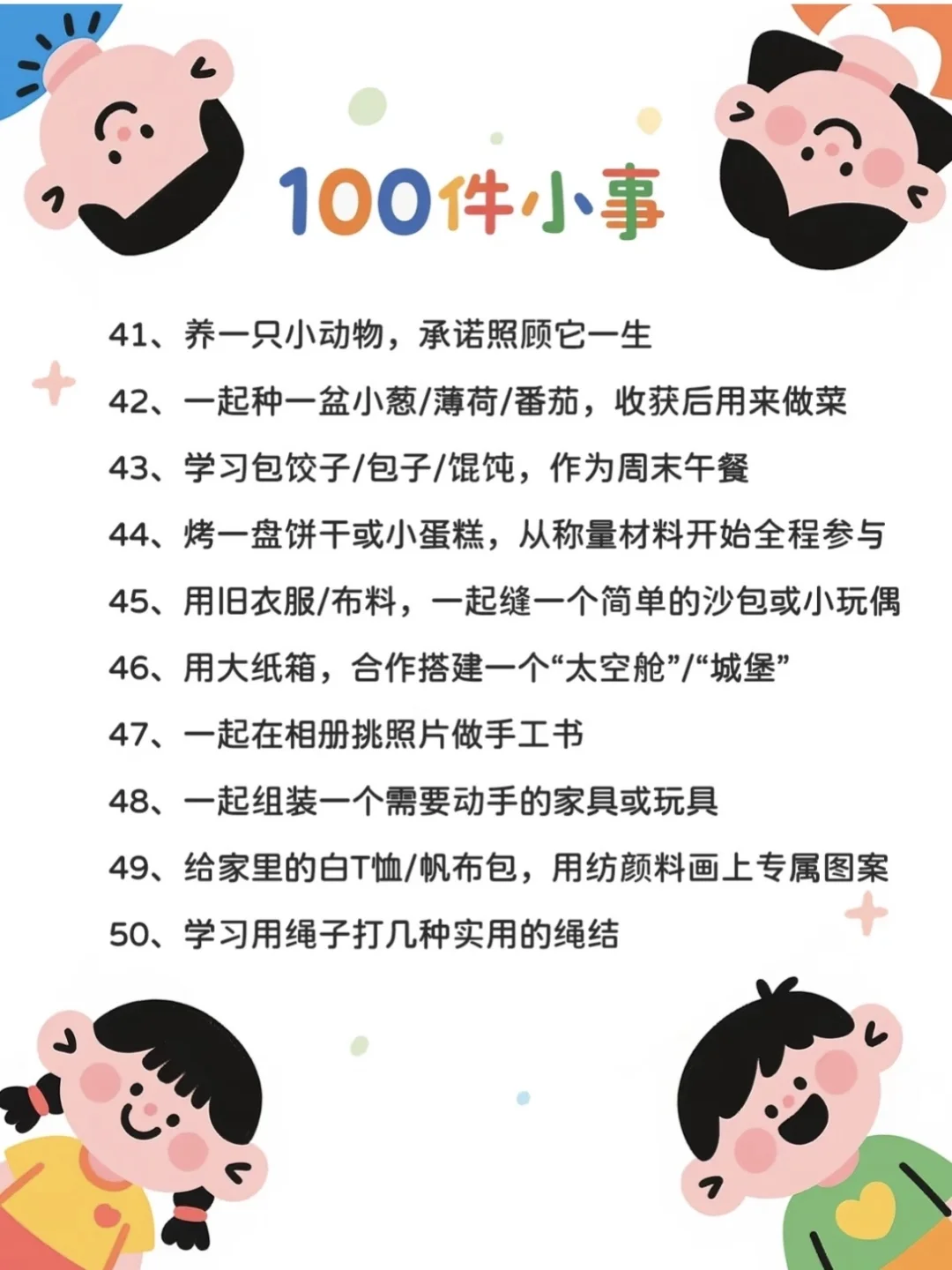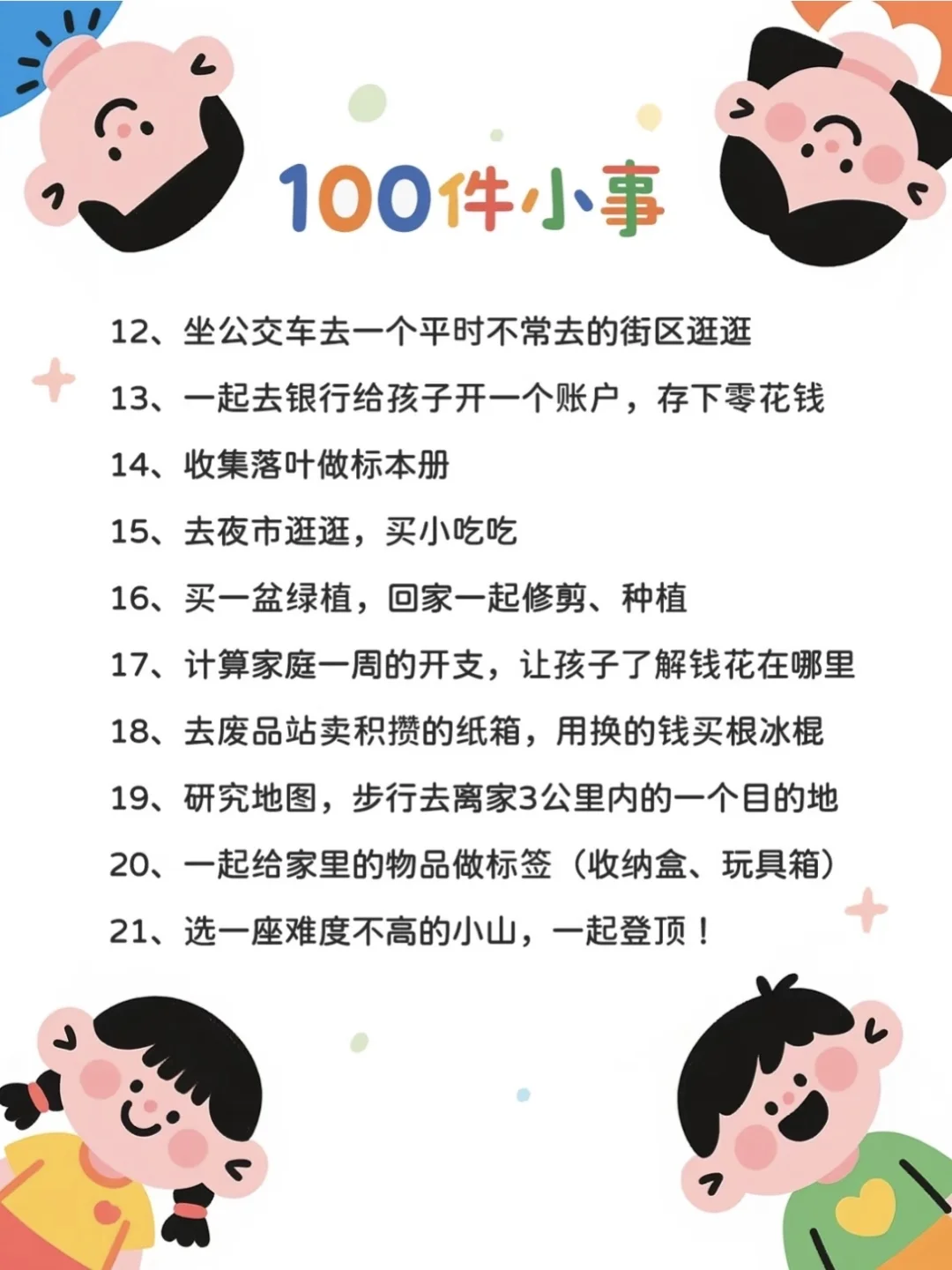 🌈我们总想给孩子安排快乐充实的周末 🌀有时候想破头也想不到要干嘛 📝这份清单里的100件小事 带宝贝一起慢慢完成 陪宝贝度过每一个快乐的周末😊 妈妈们有更好的周末带娃方式也来分享吧! ·
