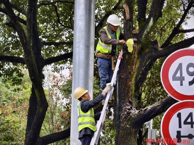 11月4日,怀化市迎丰路三眼桥路段,一棵行道树枝叶遮挡了附近道路指示牌,影响行人与车辆识别。佳应园林工人接到相关部门反馈后,迅速赶赴现场开展修剪作业。经过专业处理,遮挡指示牌的枝叶被清理干净,指示牌重新清晰可见,保障了道路通行安全与信息传递准确。(全媒体记者易达通讯员刘政摄)