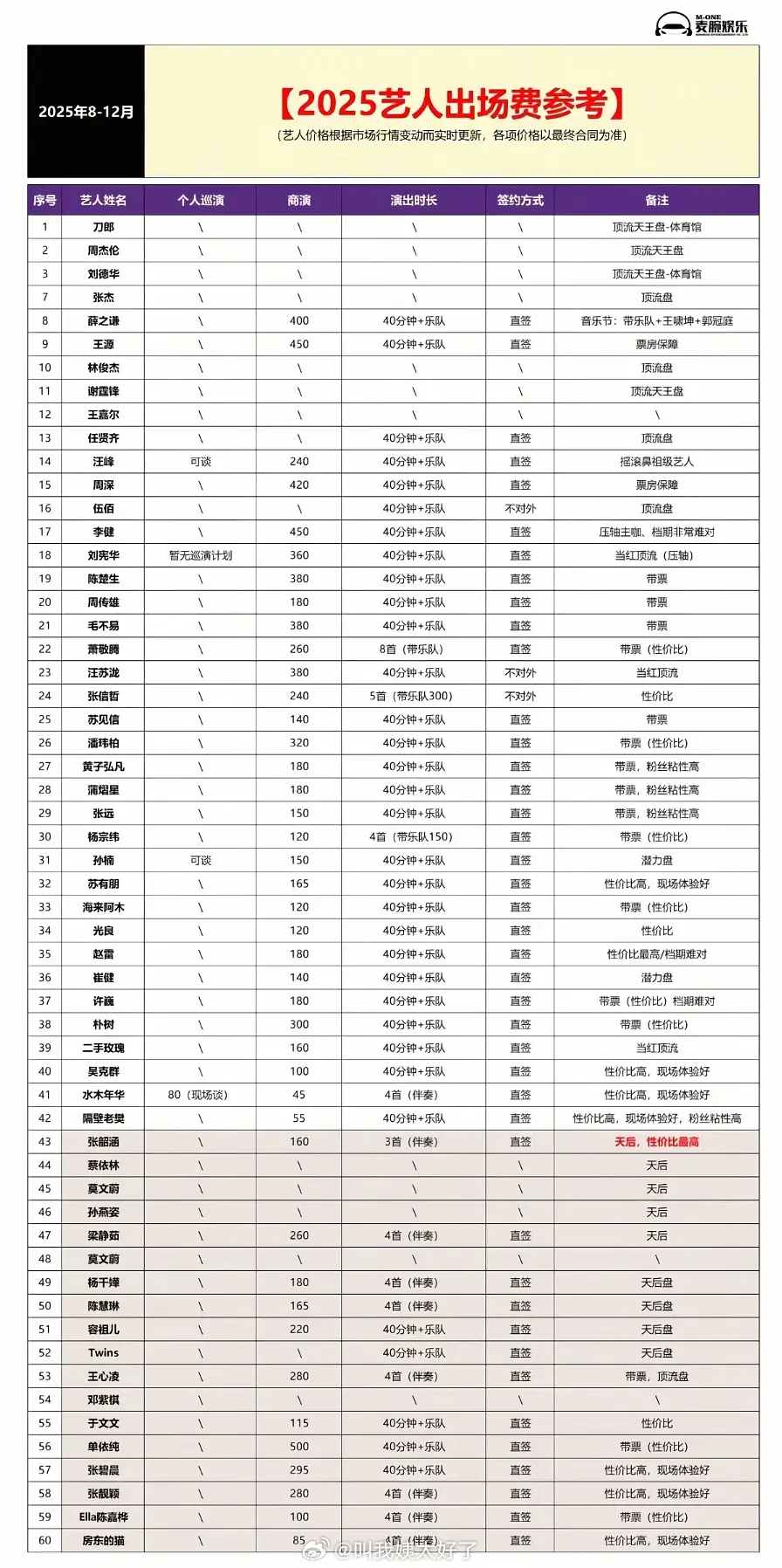 🍉音乐节艺人出场费,几分钟就有几百万,难怪那么多人想去音乐节。