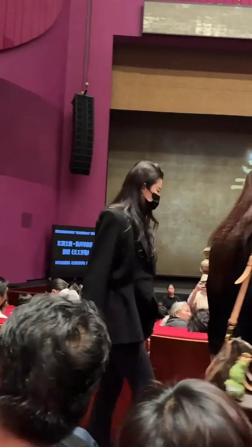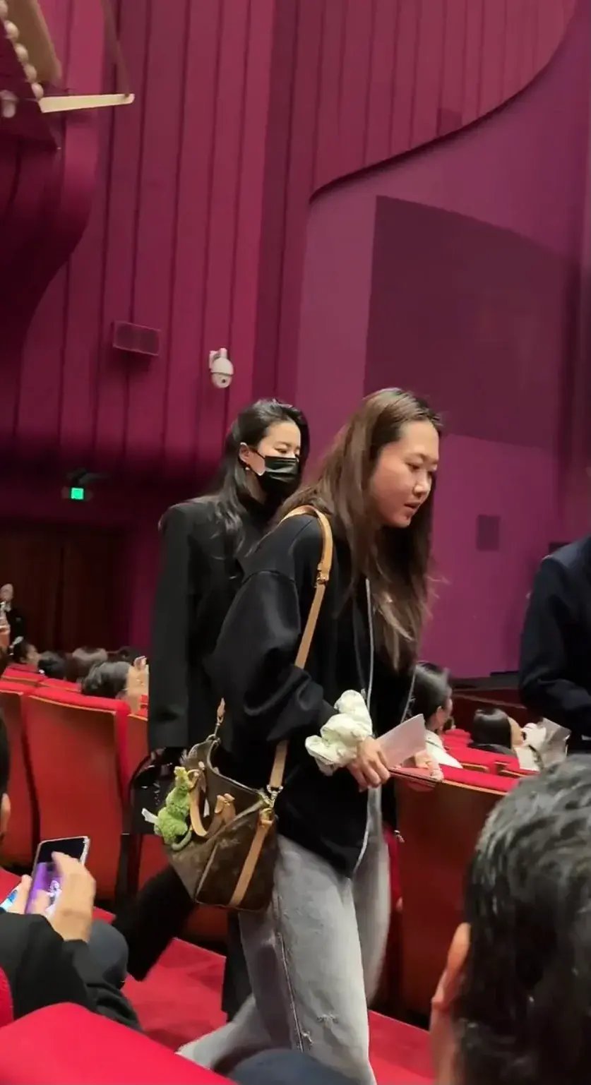 刘亦菲去看舞剧,她穿西装搭lululemon外套,一身黑的她又高又瘦