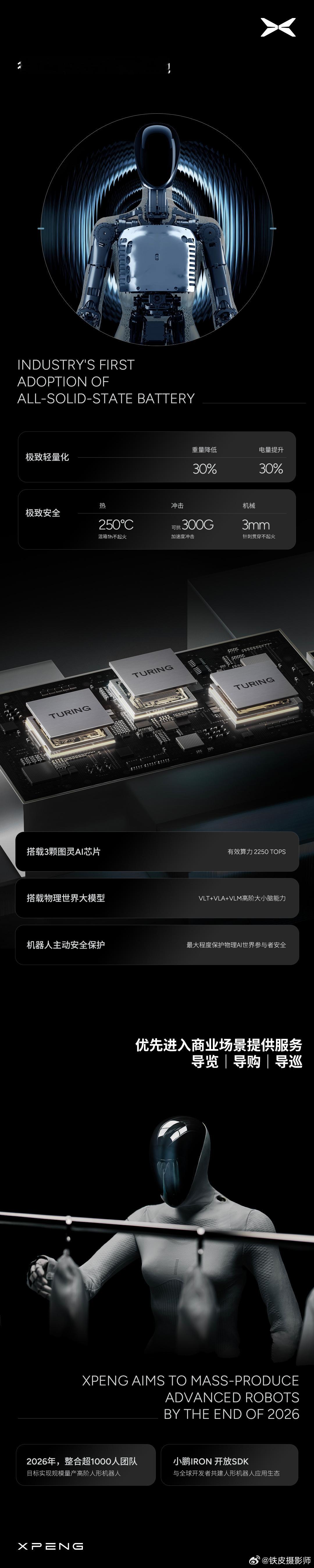小鹏机器人会走猫步太像人了 其实今天小鹏科技日,我最兴奋的莫过于看到 IRON 的猫步出场了。当然今天还是保守一些,那个猫步很精彩但没有安排互动环节,这个跟特斯拉发布会上安排的那些互动还是有差距的,产品进度不可能比美特斯拉。但今天公布 IRON 目标是 2026 年底量产,所以后续应该很快会有真正互动的体验出现,包括出现在门店进行接待任务。