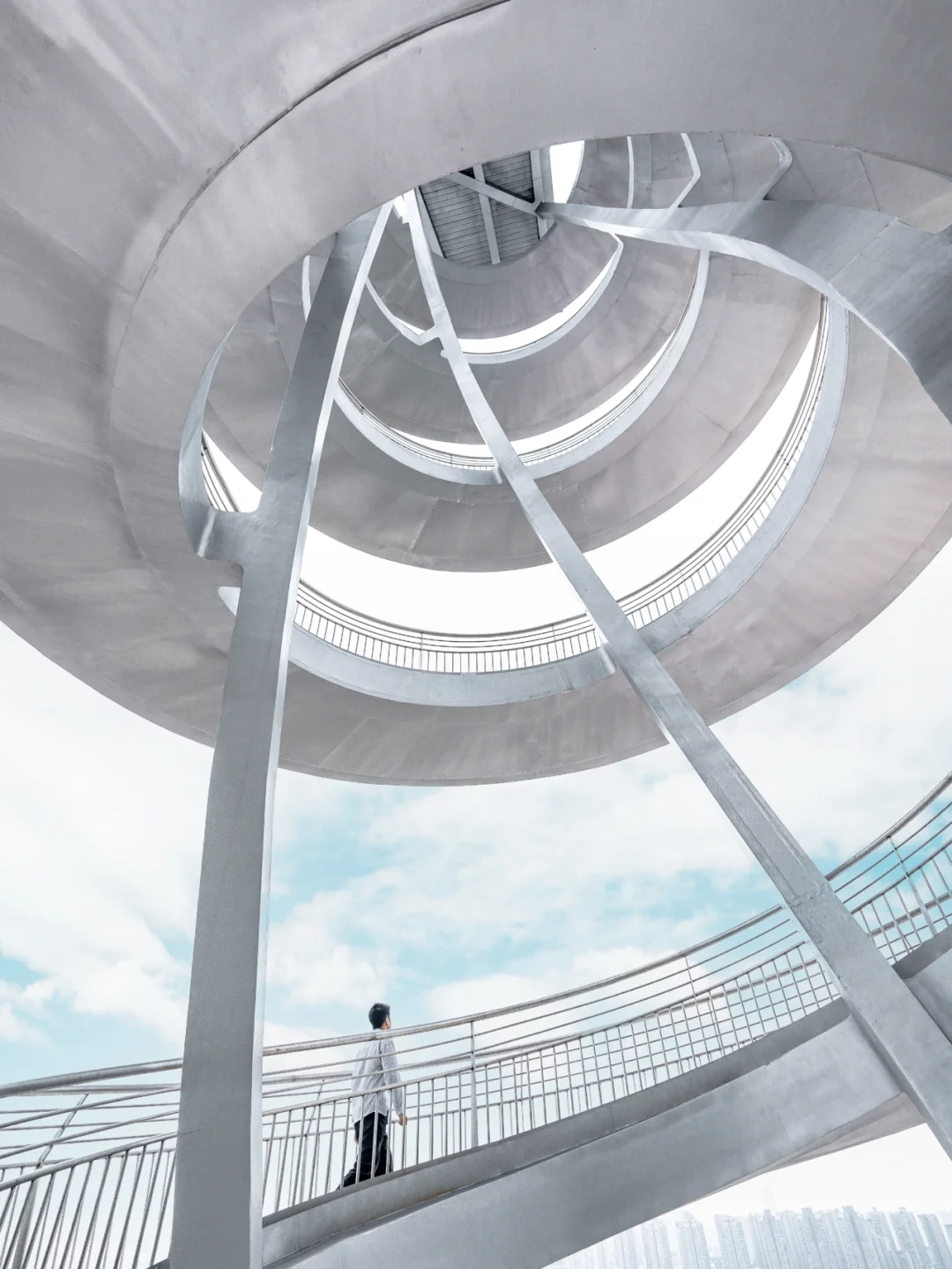 重庆九龙坡这个螺旋天梯吸引很多摄影博主前来拍照打卡,今天刚好路过也来打卡一下,360度全方位的高空观景,视野特别开阔,站在上面可以看见南岸区的鹅公岩大桥,拍照真的太炫酷出片了💥