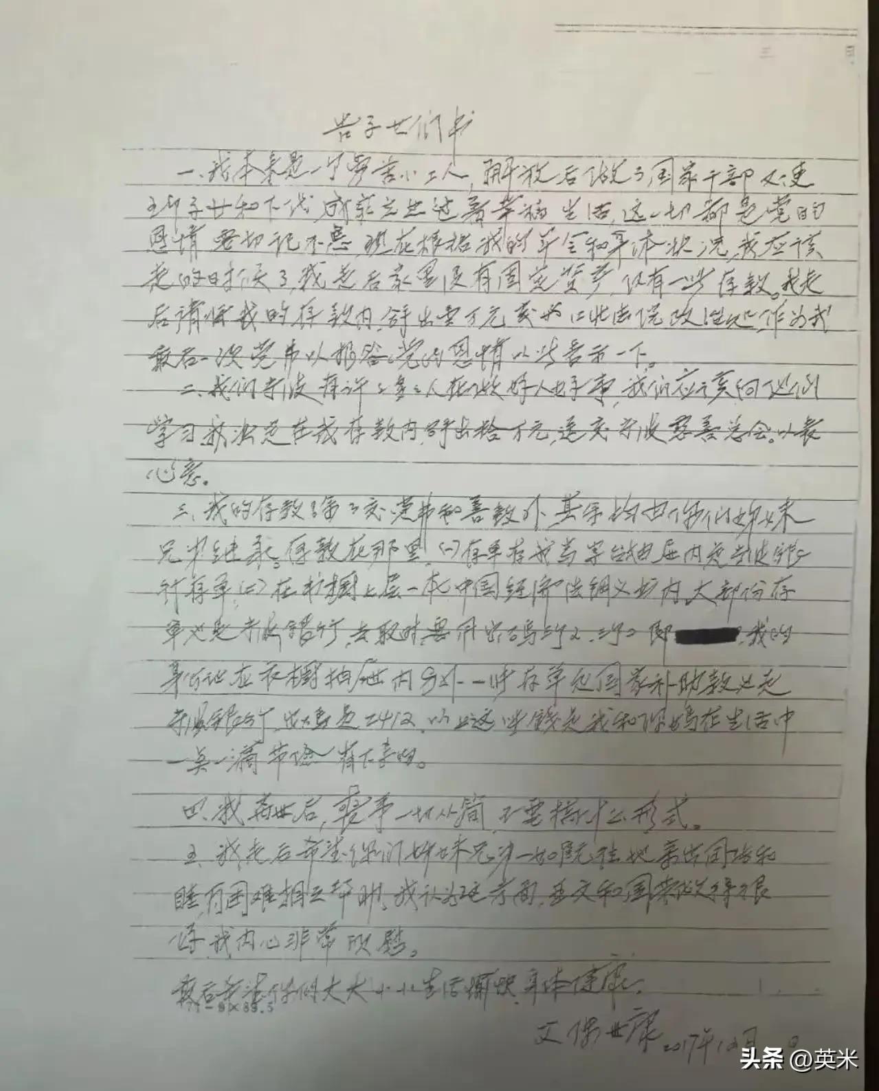 宁波ICON,一座城市的繁华背后,却藏着无数温暖而动人的故事。百岁老人离世的那一刻,子女们以为他们已经了解了父母的一切,但当他们在家中翻找遗物时,却意外发现了一封尘封已久的“遗书”。那是一封8年前写下的信,字里行间满载着深沉的爱与责任,也让所有人忍不住泪目。 这封信没有华丽的辞藻,也没有惊天动地的誓言,却用最朴实的语言,交代了两件对他们意义非凡的事情。第一件,是关于家族的传承。老人叮嘱子女们,要把家族的传统继续传下去,不仅仅是物质上的继承,更是精神上的坚守。那份关于家风的叮咛,让人感受到一份跨越时间的责任感,也让我们反思:在这个快节奏、物欲横流的时代,真正值得我们传承的,或许就是那份根植于心的温暖和坚韧。 第二件事,令人动容。老人写到,他希望子女们在追求梦想的同时,也不要忘记初心,要常回家看看,关心老人,陪伴家人。或许在他们的生活中,曾经有过遗憾,但这封信却像一束温暖的光,照亮了后辈们前行的路。它告诉我们,人生的意义,或许不在于追求多少名利,而在于那份陪伴与关爱。 这封“遗书”让人不禁反思:我们是不是也在忙碌中渐渐忽略了家人的感受?是不是也像他们一样,应该在日常的琐碎中,留一份温情,传递一份责任?老人用生命的最后一刻,留下一份深沉的爱,提醒我们:无论世界多么喧嚣,家永远是我们最温暖的港湾。 故事的背后,是人性中最真挚的善良和责任感。它让我们明白:无论年龄多大,爱都不会褪色;责任和传承,也不会随时间而淡去。每个人的生命,都值得被尊重、被铭记。而那些看似普通的细节,恰恰是最打动人心的力量。 也许,我们都应该学会像那位老人一样,用一封信、一份行动,去告诉身边的人:你们在我心中,有多重要。因为,爱与责任,从未过时。让我们用心去感受,用行动去传递,让这个世界因为我们的善良与坚守,而变得更加温暖。
