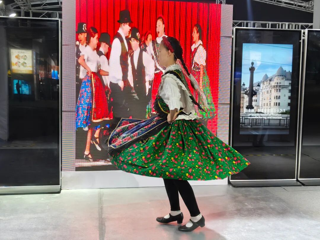 为支持本次参展工作,矫超的妻子周璐女士和女儿矫之晗也一同来到上海。在展台现场,她们穿上匈牙利传统服饰,为观众表演民族舞蹈。色彩绚烂的服装一下子就吸引了人们的目光。“我女儿是专门向学校请假过来跳舞的,我们做这件事的动力就是希望通过民间外交促进国际传播。”矫超说道。