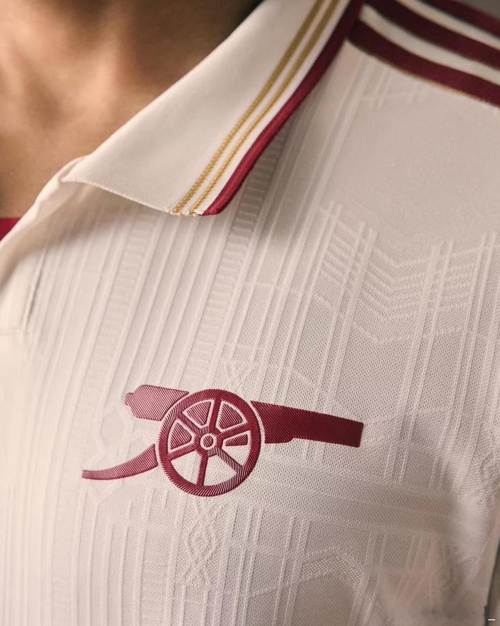 感谢这件阿森纳二客实在美丽复古Polo领加上精致暗纹,酒红搭配奶白,不论是绿茵场