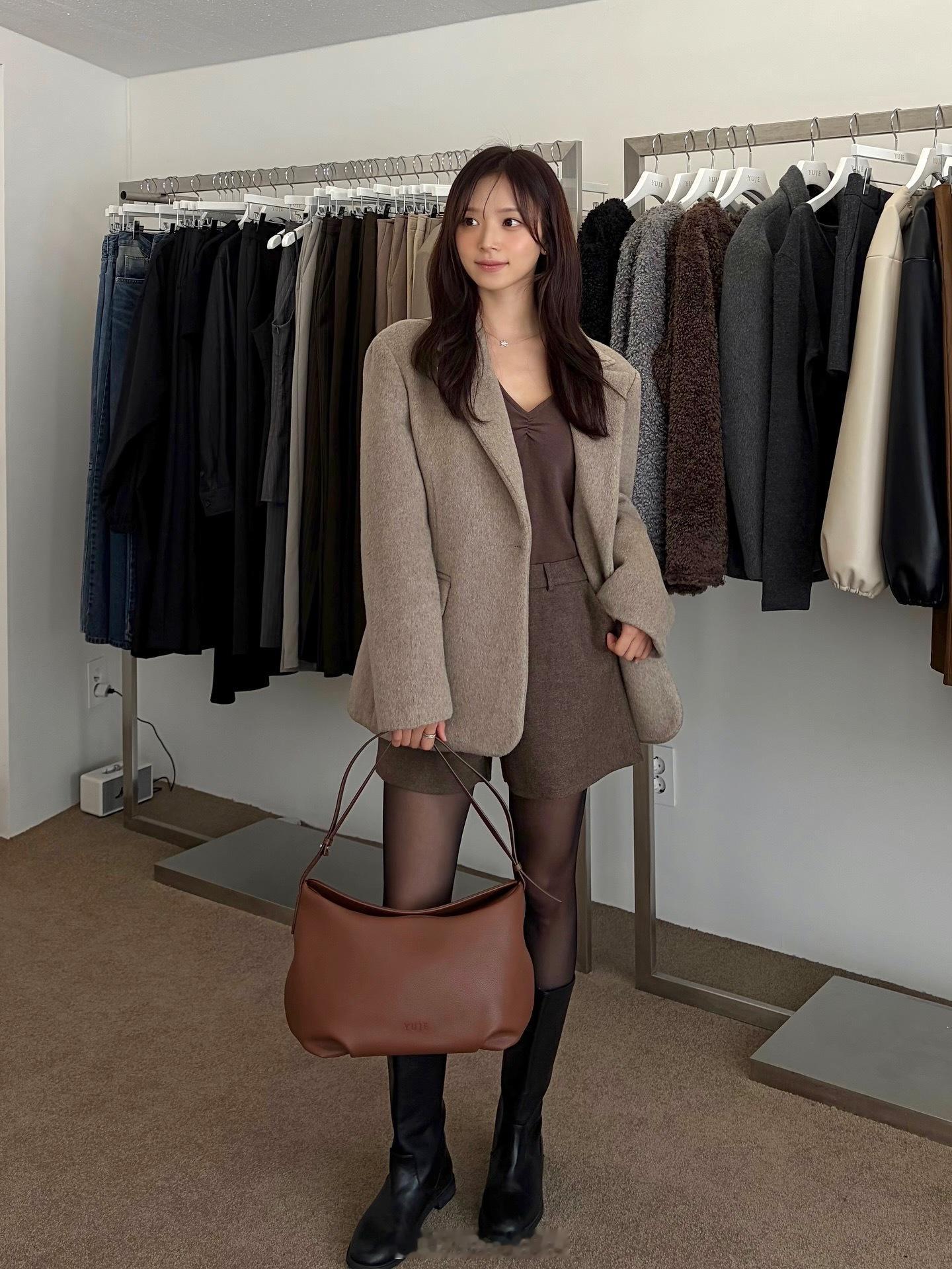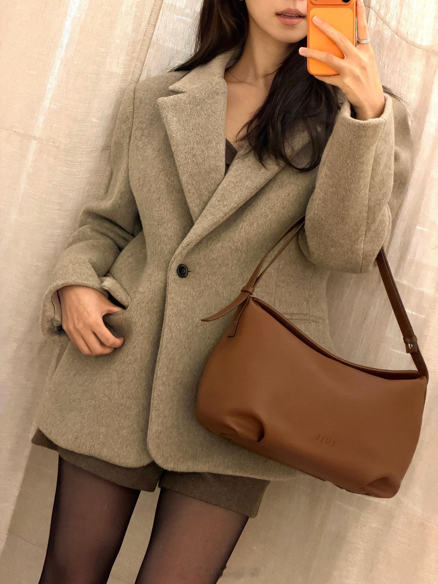 灰蓝色一上身,人就静了。不是蓝,不是灰,是雾里藏的高级感。黄皮穿它不显黑,白