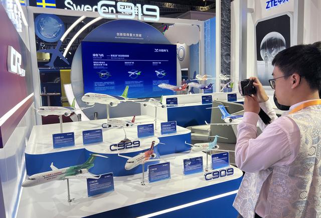 来自中国商飞的国产大飞机C919、C929等模型在中国馆展出。