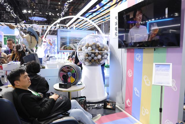 参观者体验气味电视。该产品依托AI与气味数字化技术,直播气味信号,联动scenthost精准释放对应气味,还原当地烟火气与风情,让“云游"有嗅觉。