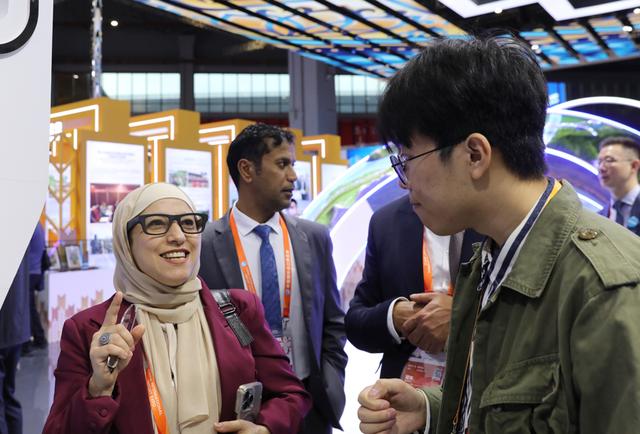 同传翻译眼镜让来自埃及的记者Amira十分惊讶:眼镜能把对方刚刚说的话翻译后呈现在使用者的眼前。