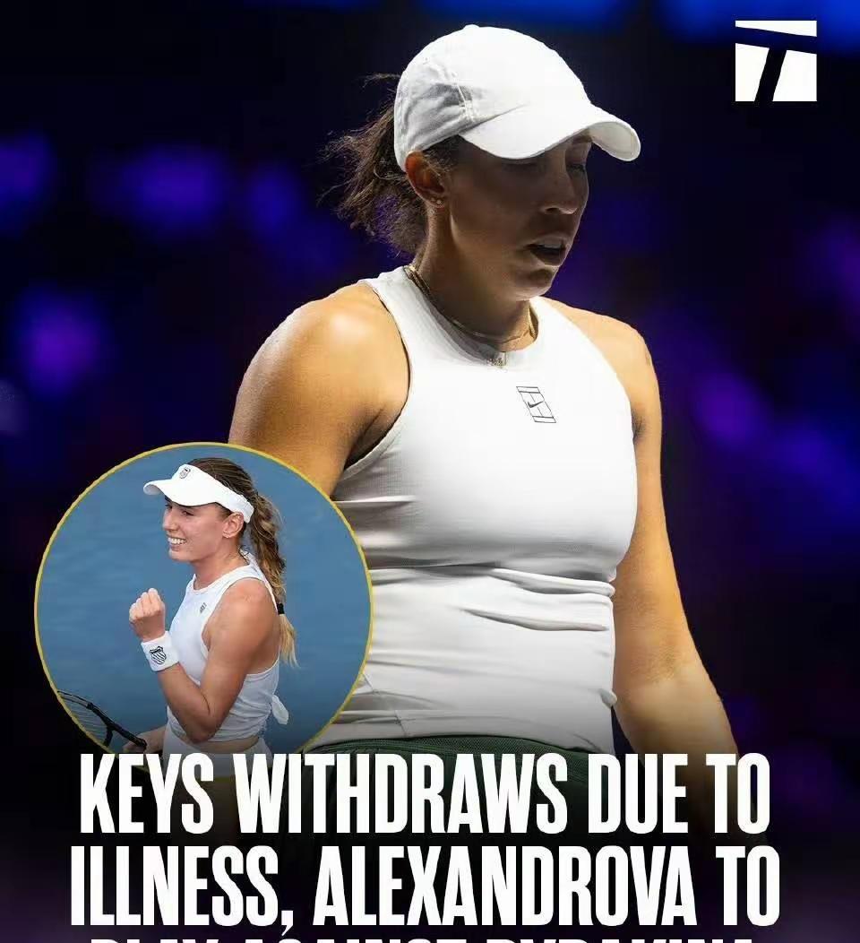 凯斯因流感退出了利雅得年终总决赛的最后一场与莱巴金娜的小组赛,本来应该由第一替补小米辣安德列娃顶替参赛,结果安德列娃也因身体不适选择退赛,也许小米辣安德列娃并不想只打这一场小组赛而是希望凭自己能力进入决赛,这样第二替补亚历山德洛娃就以第二替补身份参赛,这样宁波站决赛将再次上演,不过这场比赛最后胜利的还是状态火热的莱巴金娜(2:0),同时莱巴金娜也将与亚历山德洛娃的交手纪录改写为3:3平。